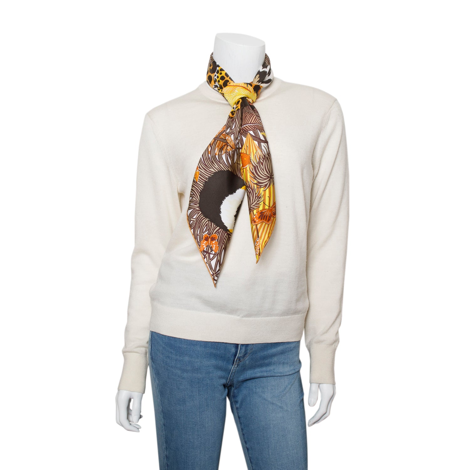 Brown/Multicolor 'Jaguar Quetzal' Silk Scarf 90 w/ Box