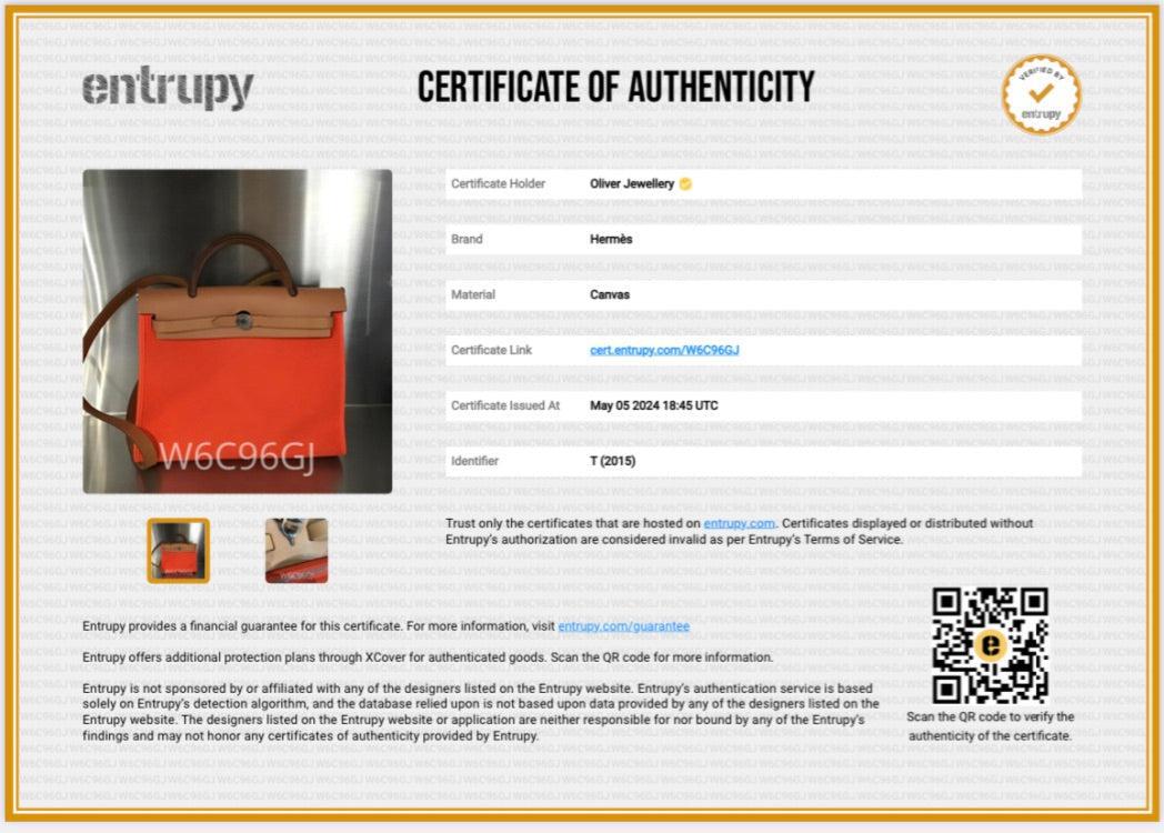 Dust Bag, Zip Pouch, Lock & Keys with Clochette, Entrupy Certificate of Authenticity