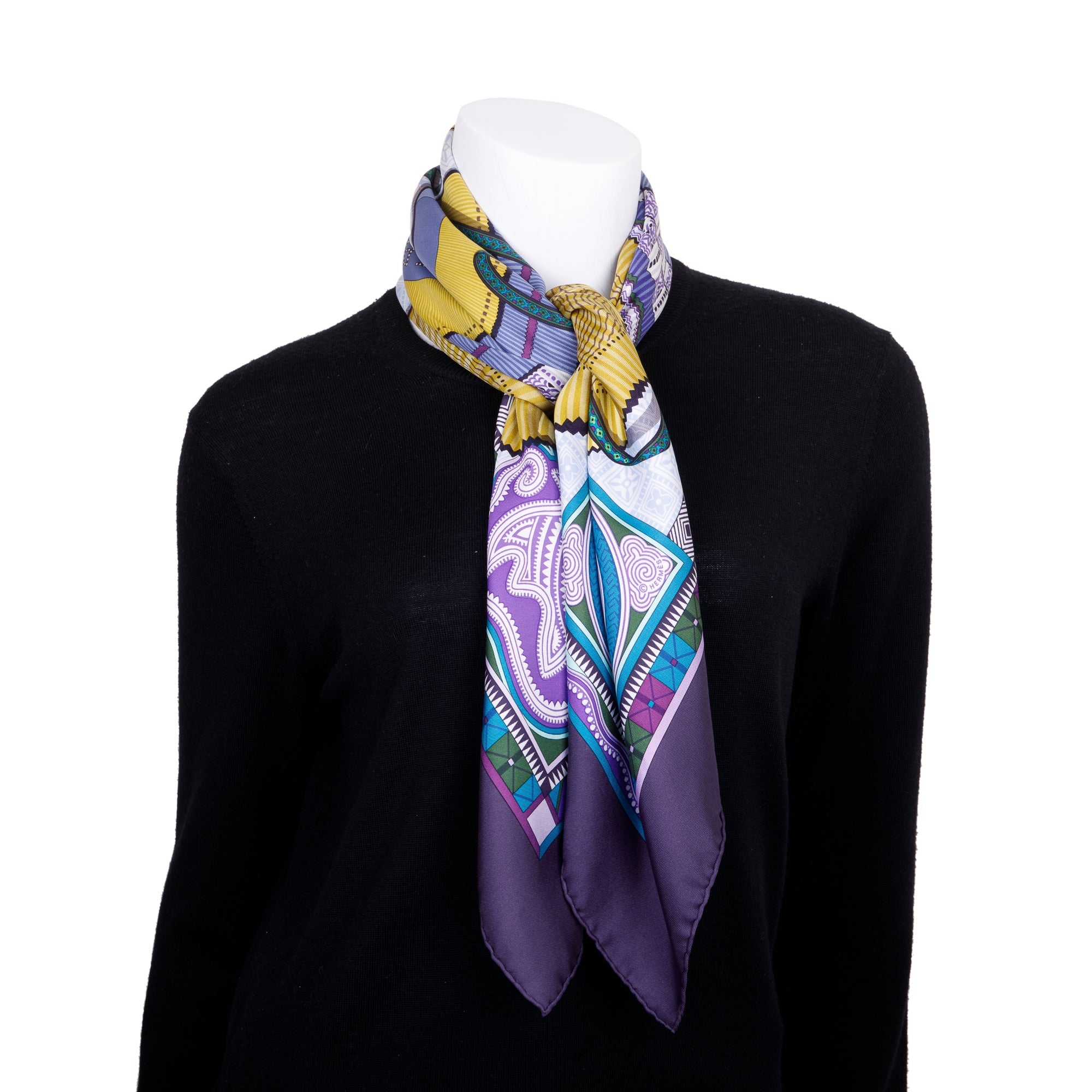 'Cent Plis Des Miao' Multicolour Silk Scarf 90 w/ Box