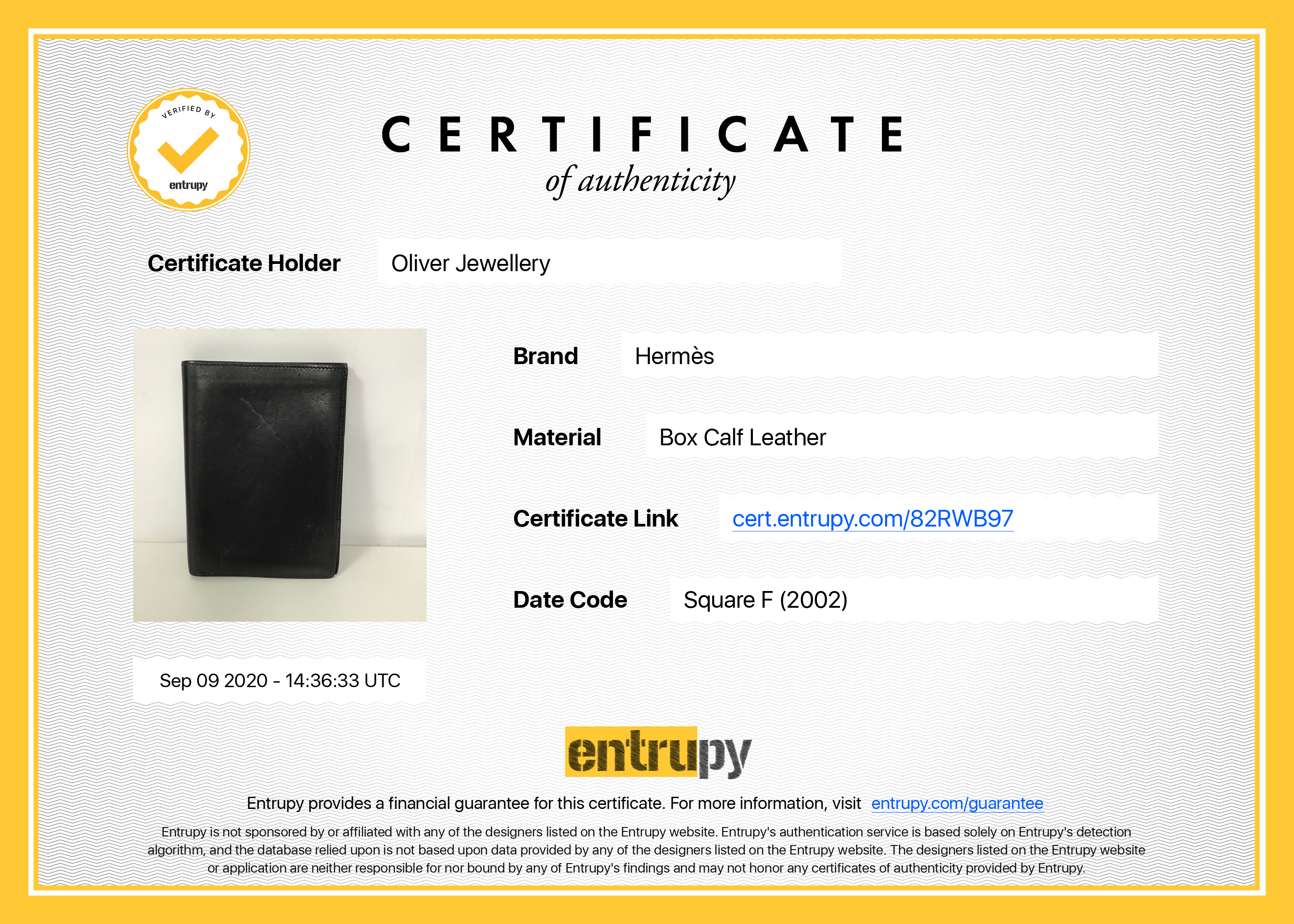 Included Items: Entrupy Certificate of Authenticity #82RWB97