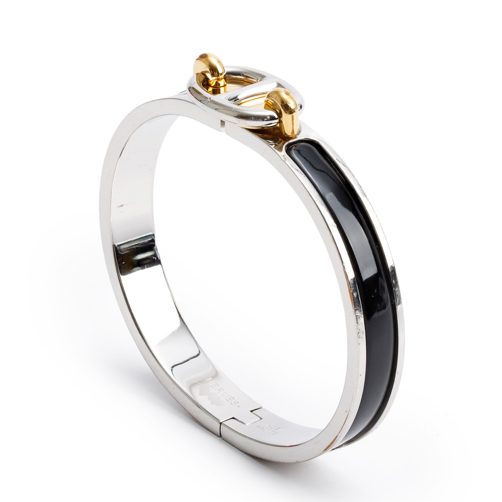 Gold & Palladium Plated Black Enamel Mini Clic Chaine D'Ancre Bracelet