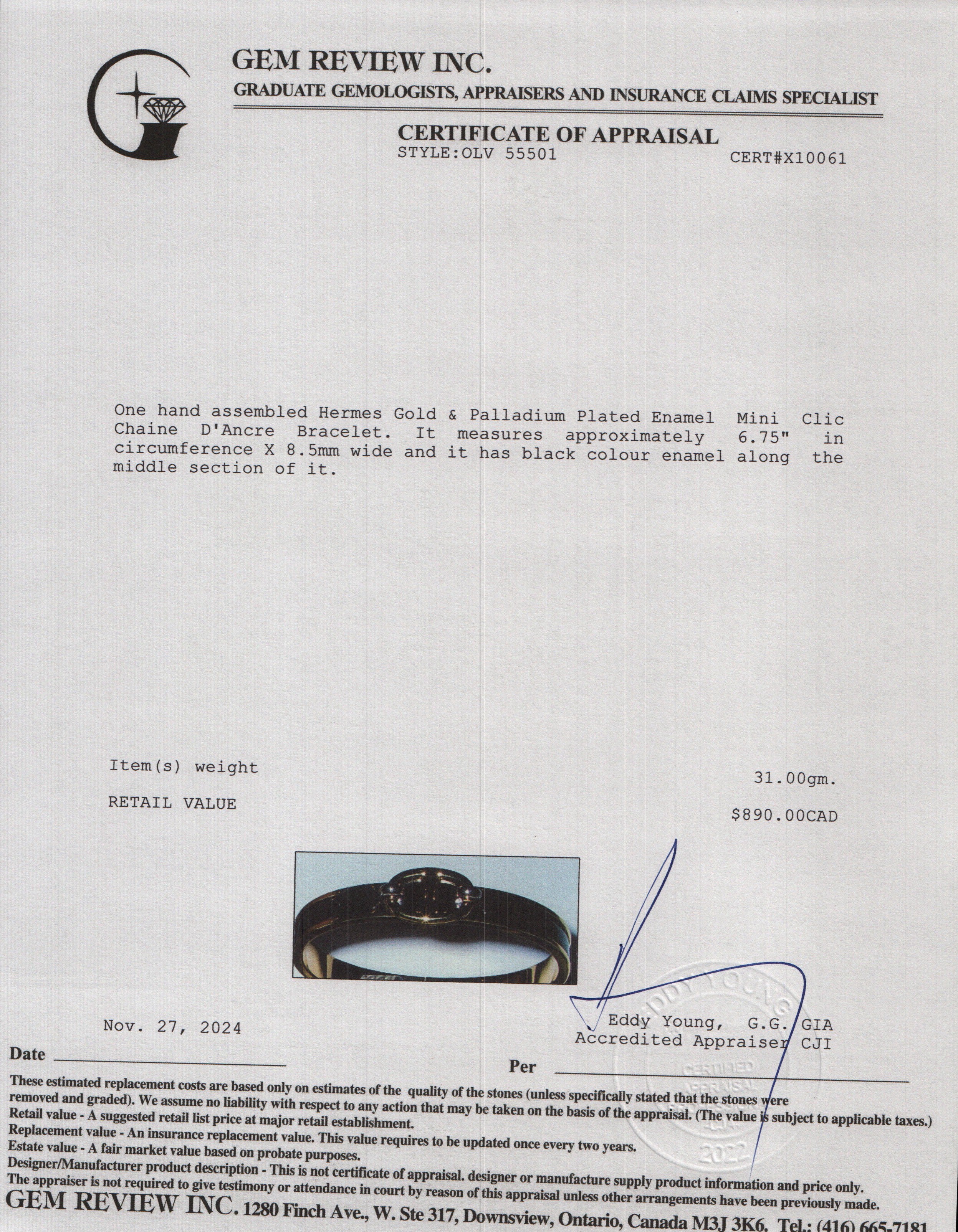 Gold & Palladium Plated Enamel Mini Clic Chaine D'Ancre Bracelet w/ Box