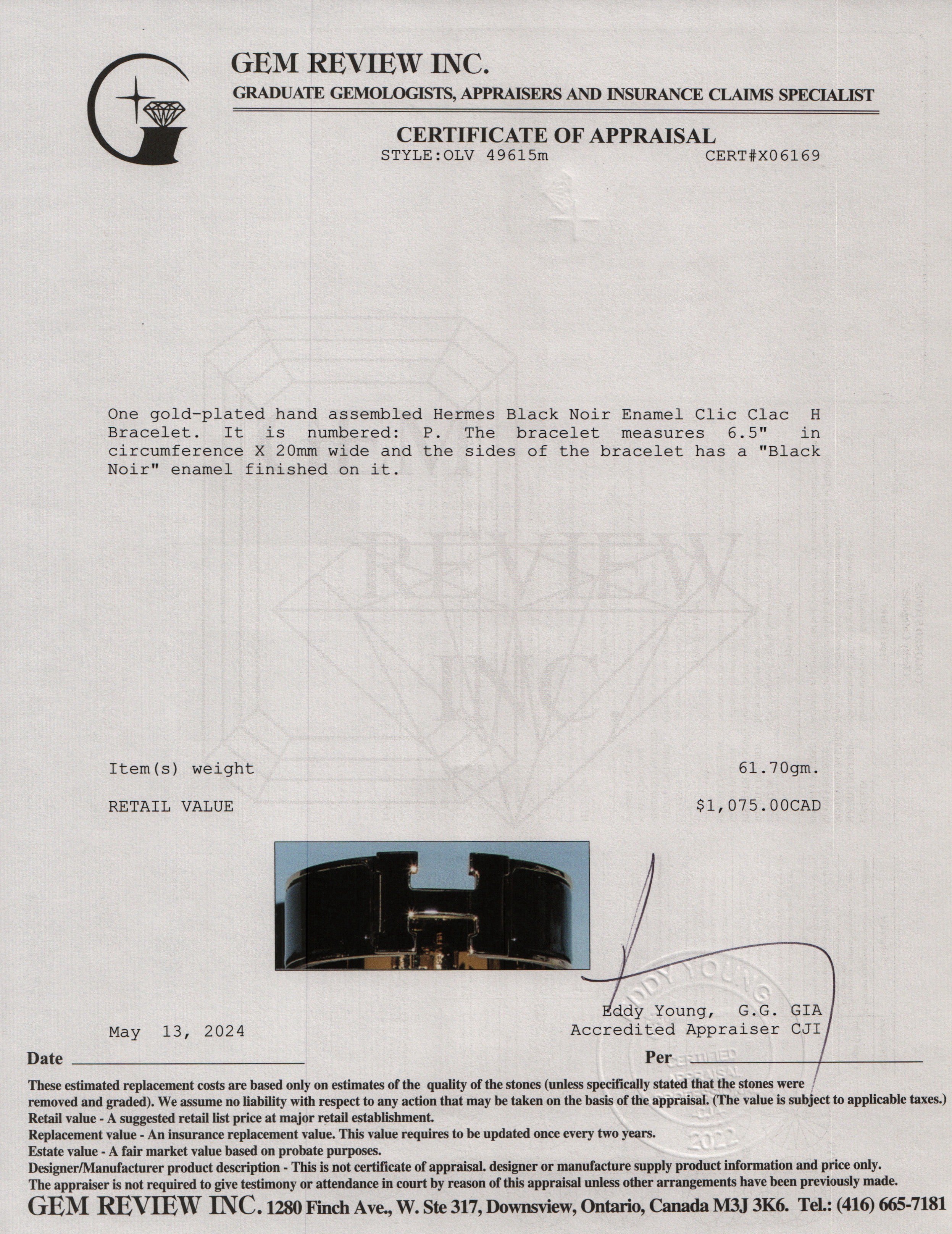 Gold-Plated Black Noir Enamel Clic Clac H Bracelet