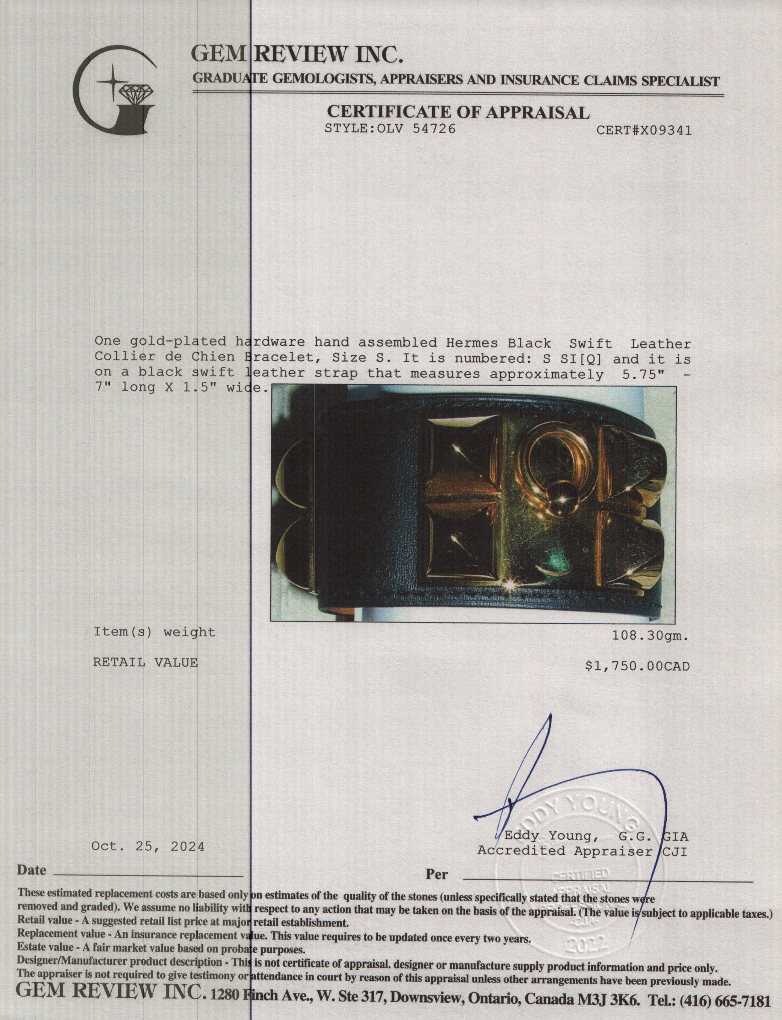 Gold-Plated Black Swift Leather Collier de Chien Bracelet, Size S