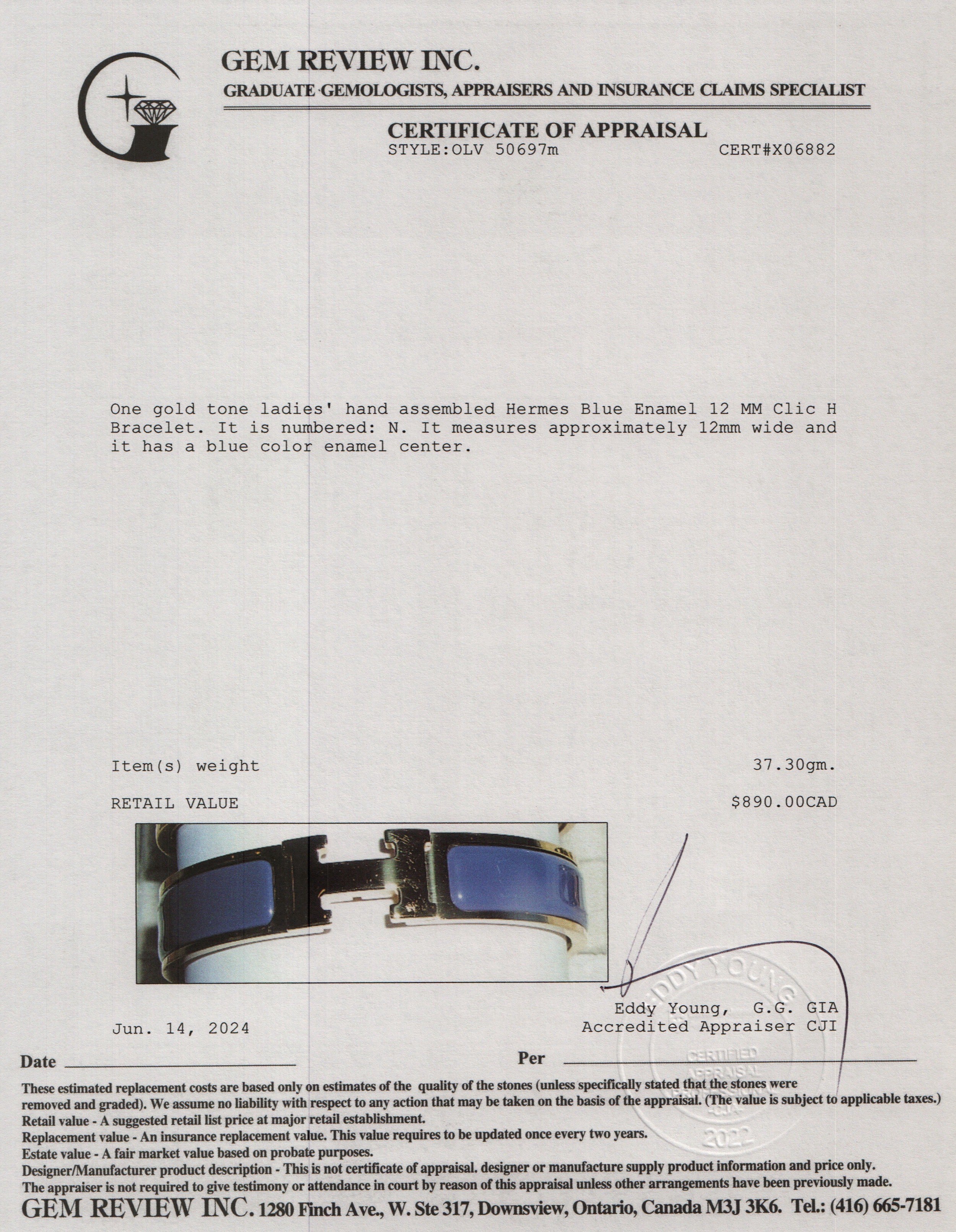 Gold Plated Blue Enamel 12 MM Clic H Bracelet