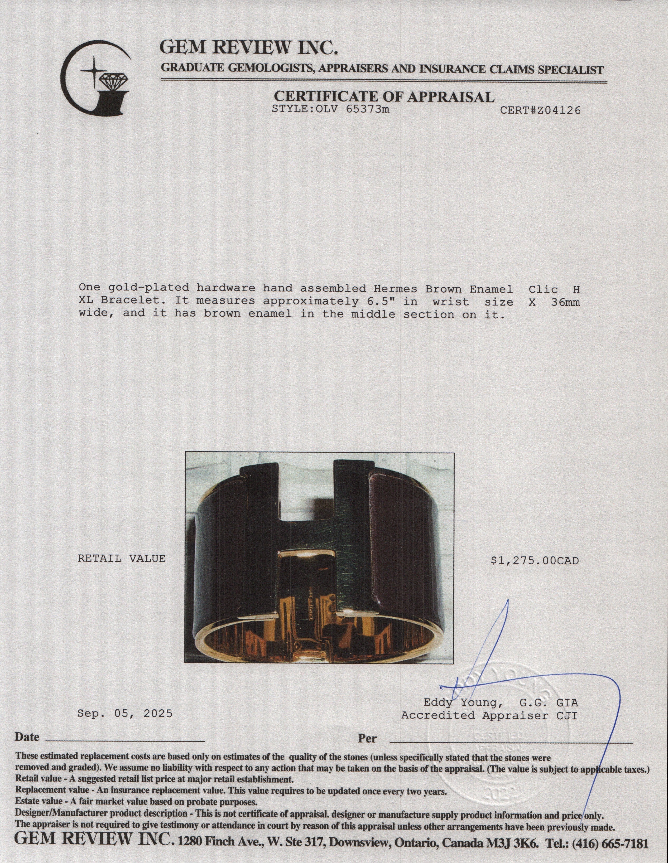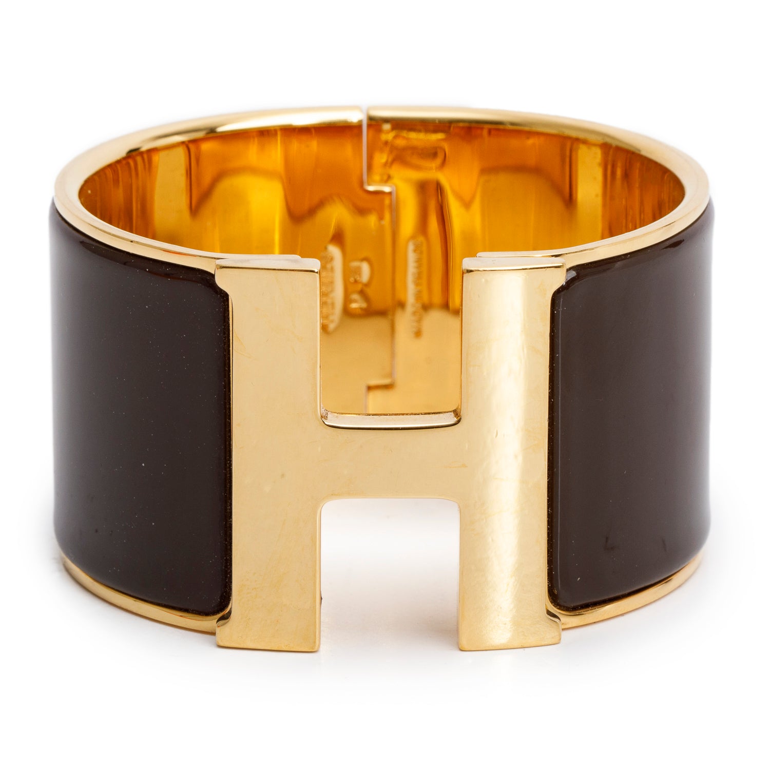 Gold-Plated Brown Enamel Clic H XL Bracelet w/ Box