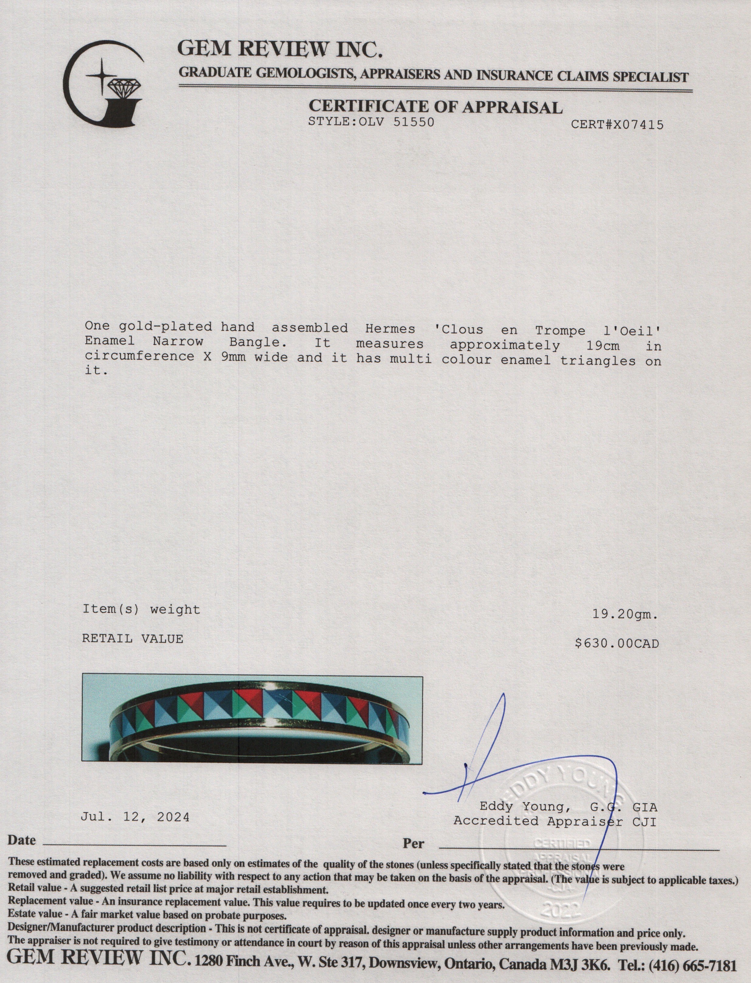 Gold-Plated 'Clous en Trompe l'Oeil' Enamel Narrow Bangle