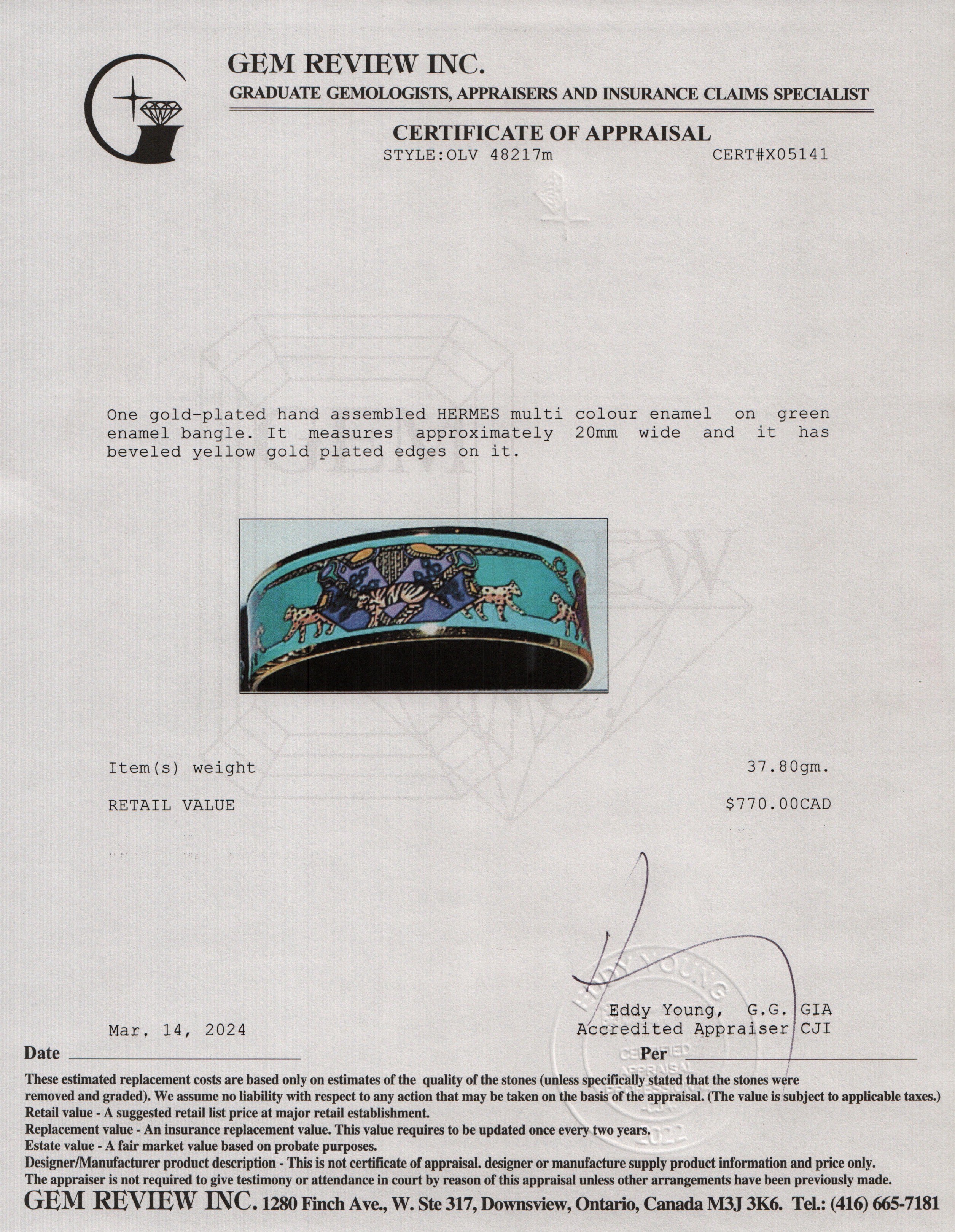 Gold-Plated Green & Multicolour Enamel Wide Bangle