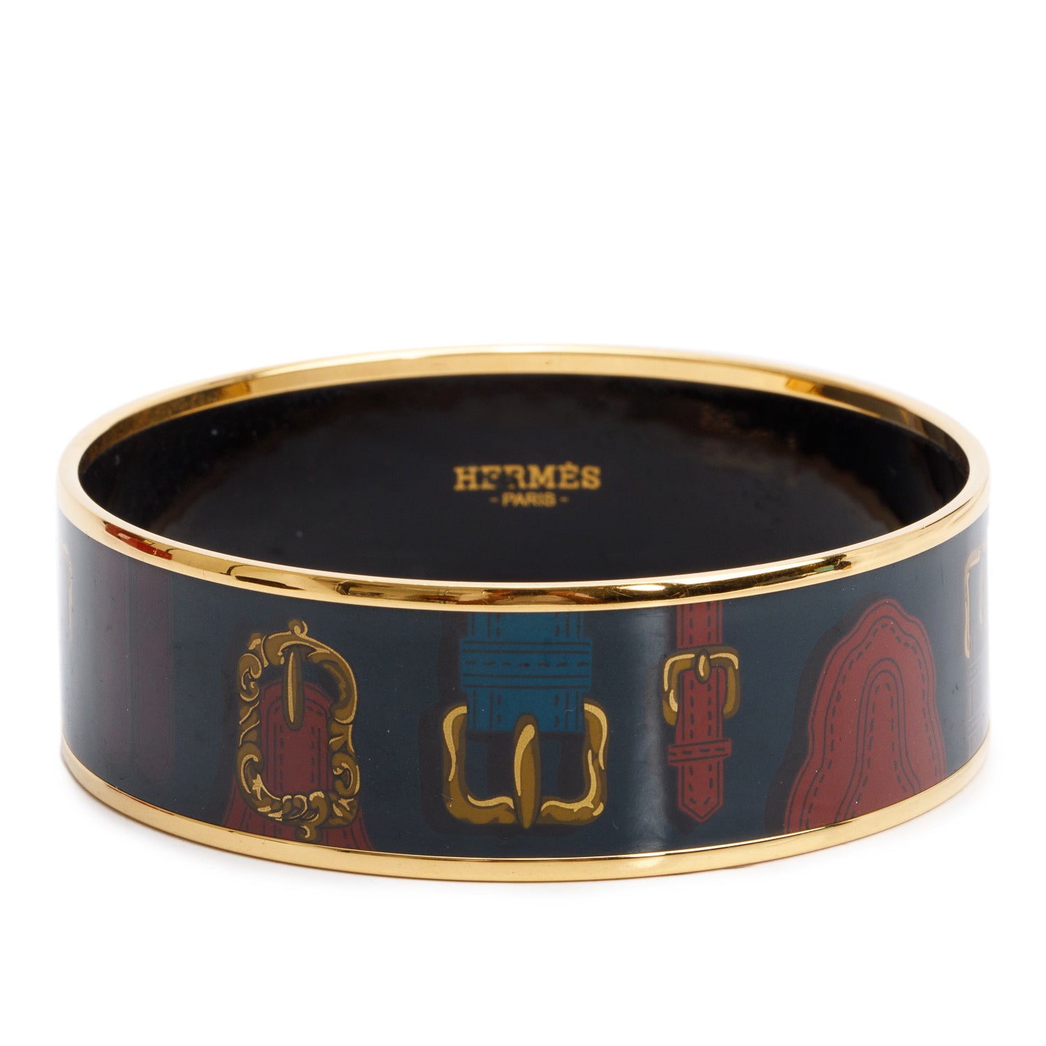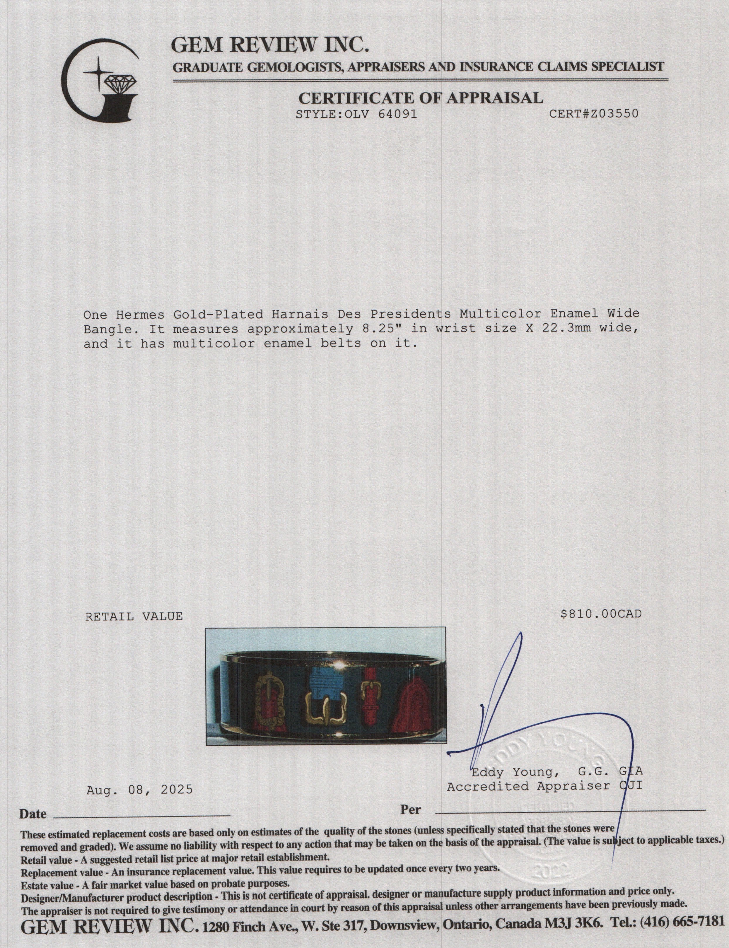 Gold-Plated Harnais Des Presidents Multicolor Enamel Wide Bangle
