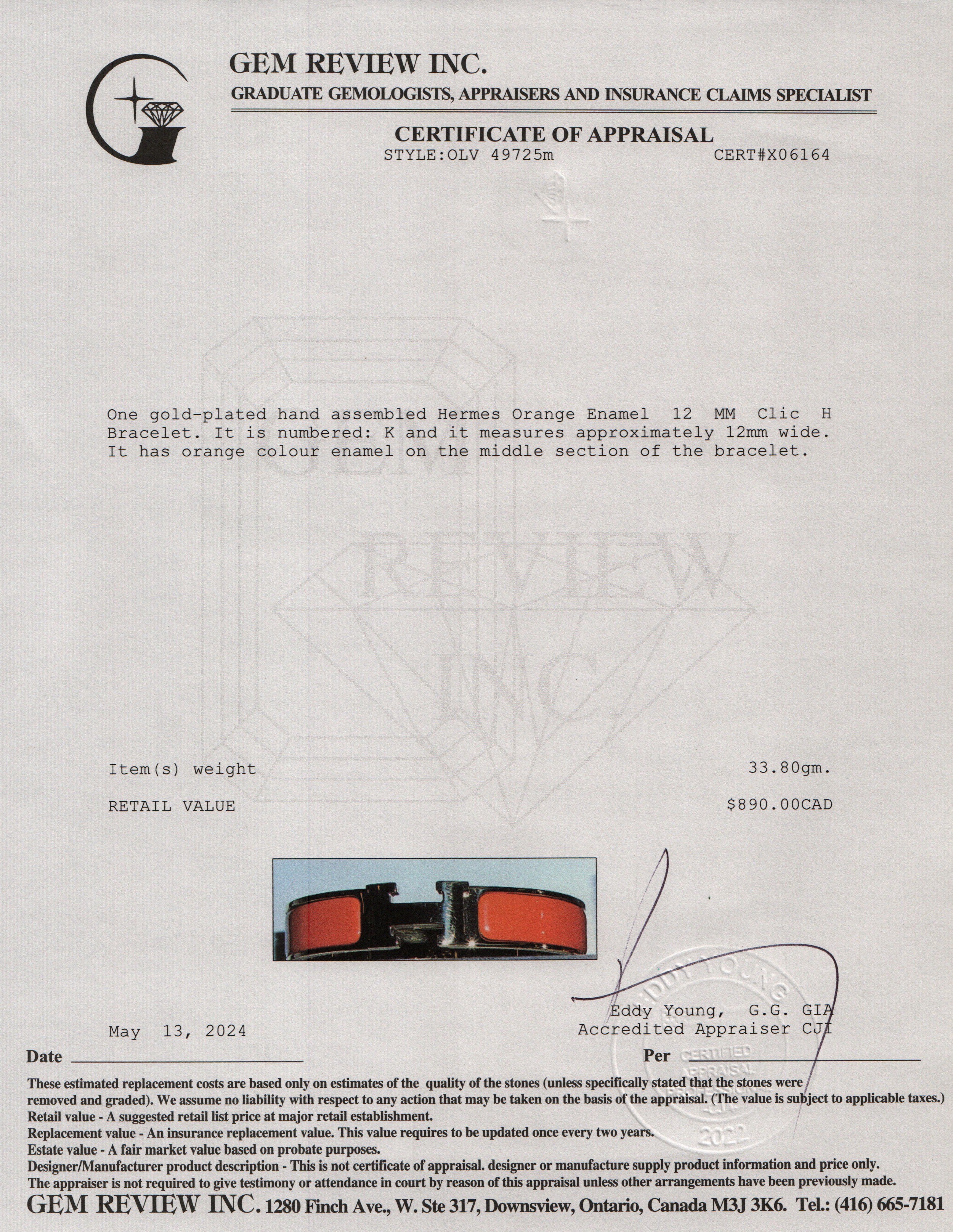 Gold-Plated Orange Enamel 12 MM Clic H Bracelet w/ Box