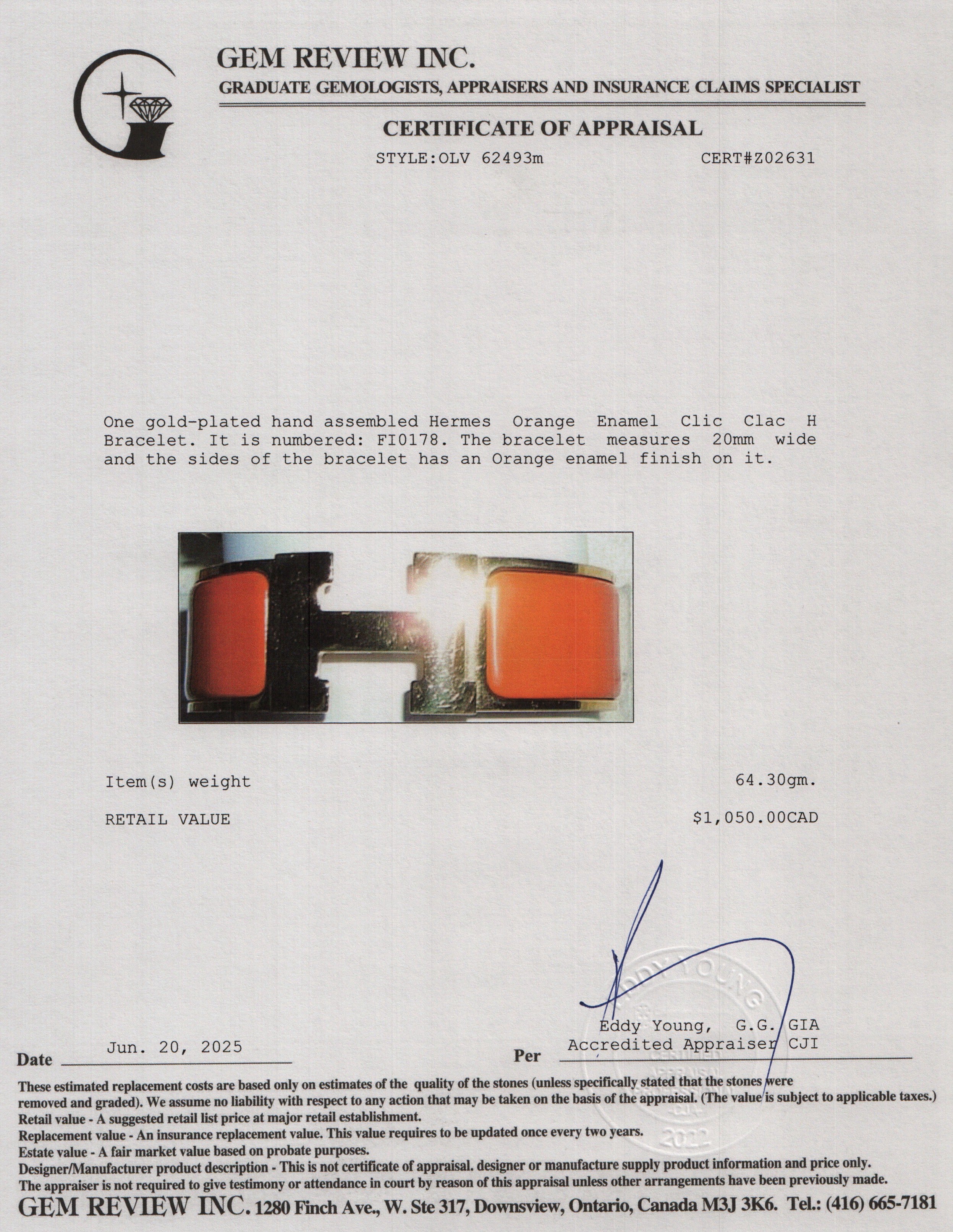 Gold-Plated Orange Enamel Clic Clac H Bracelet w/ Box