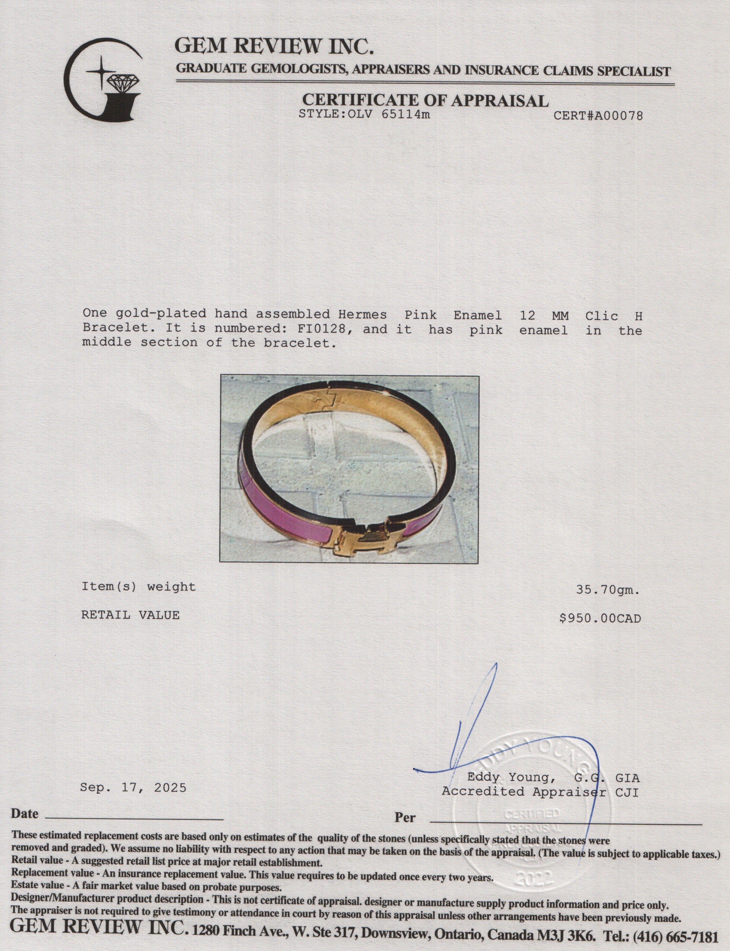 Gold Plated Pink Enamel 12 MM Clic H Bracelet