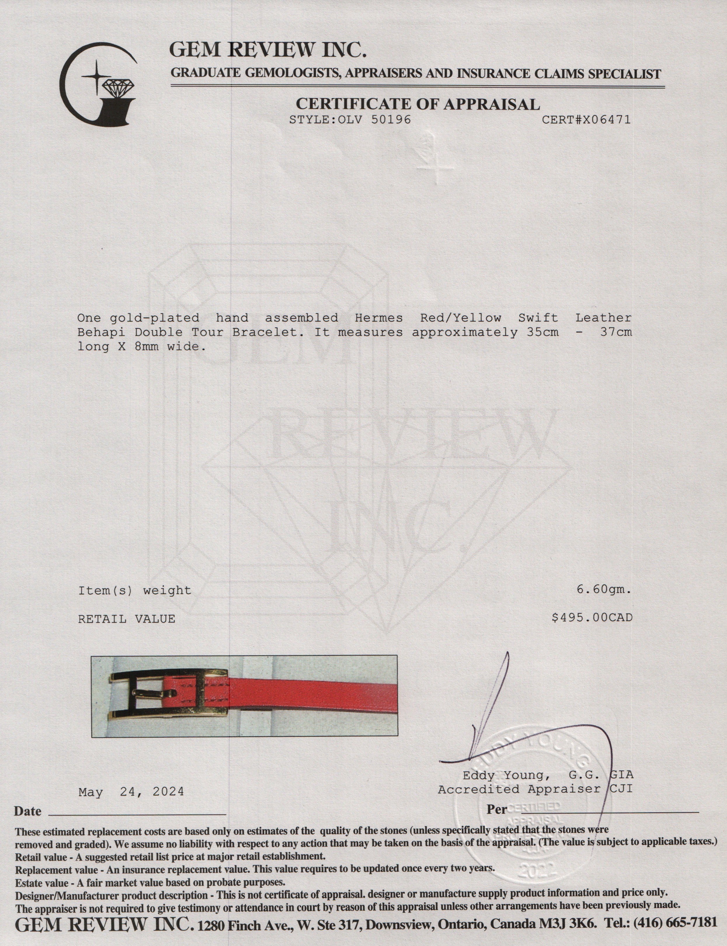 Gold Plated Red/Yellow Swift Leather Behapi Double Tour Bracelet w/ Box