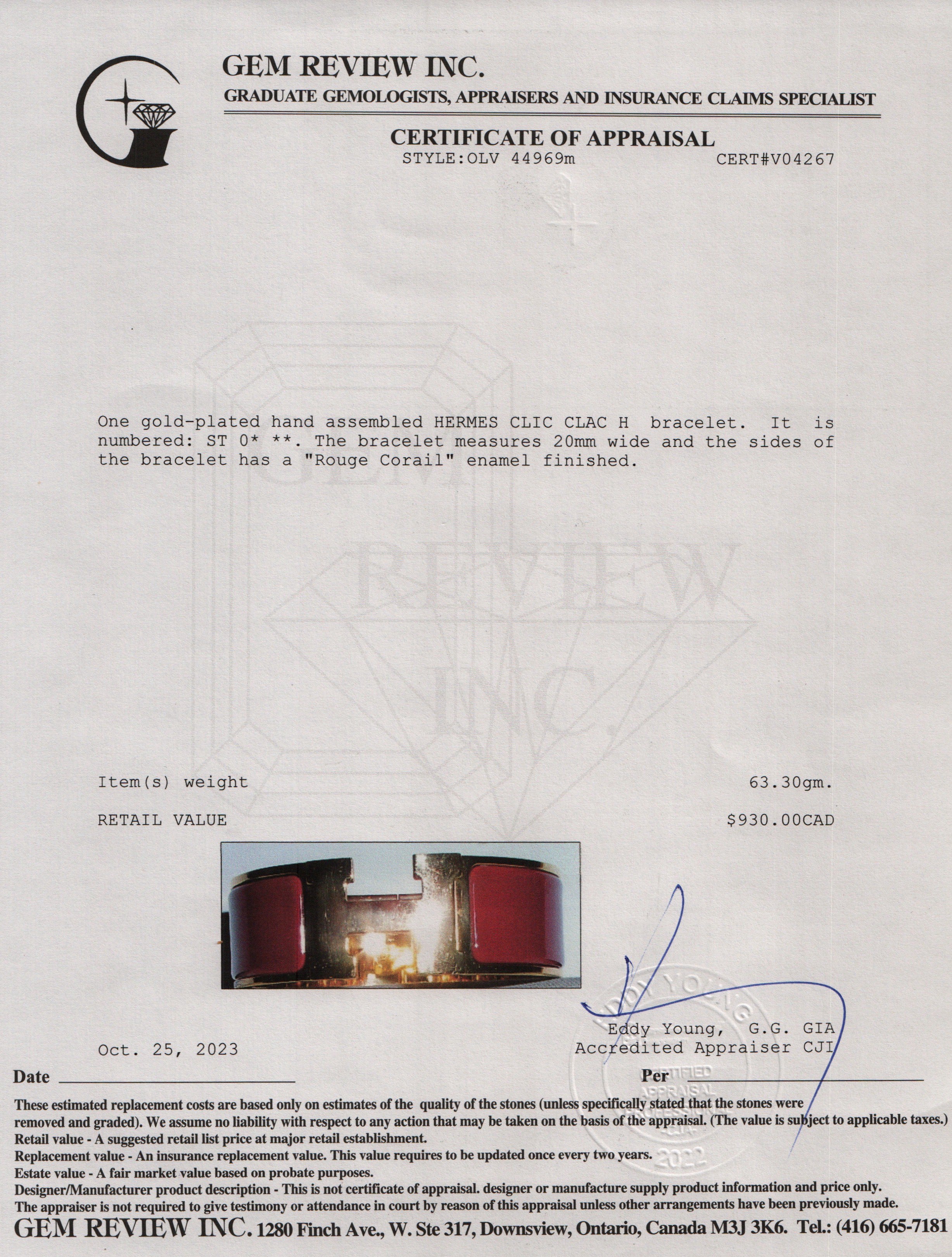 Gold-Plated Rouge Enamel Clic Clac H Bracelet