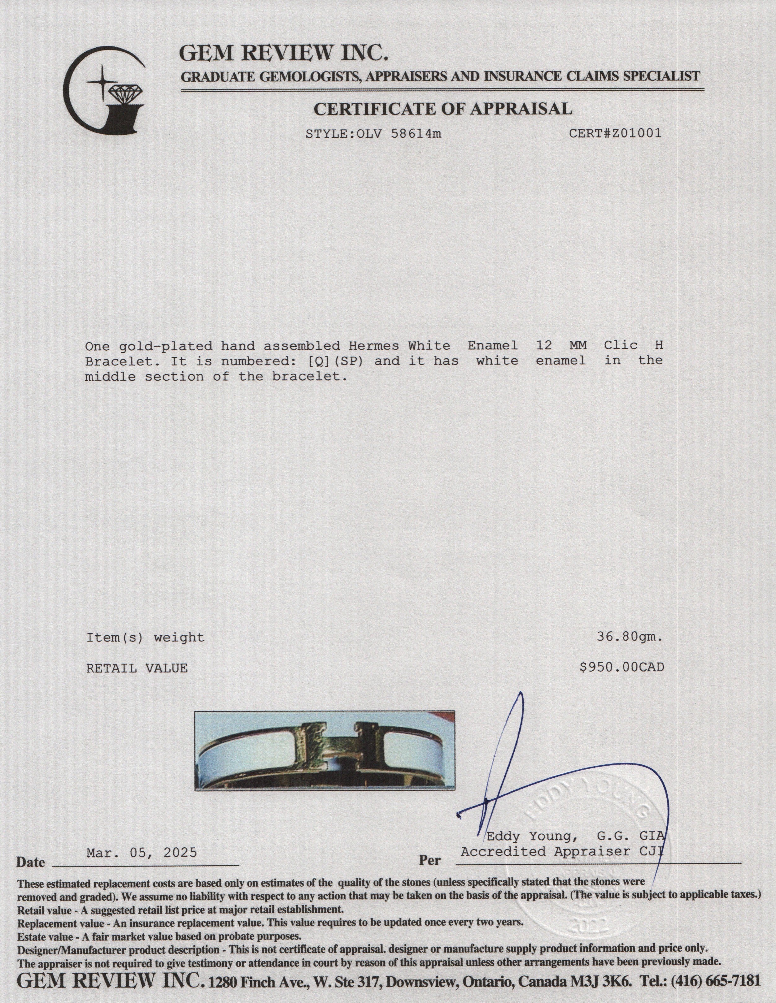 Gold Plated White Enamel 12 MM Clic H Bracelet