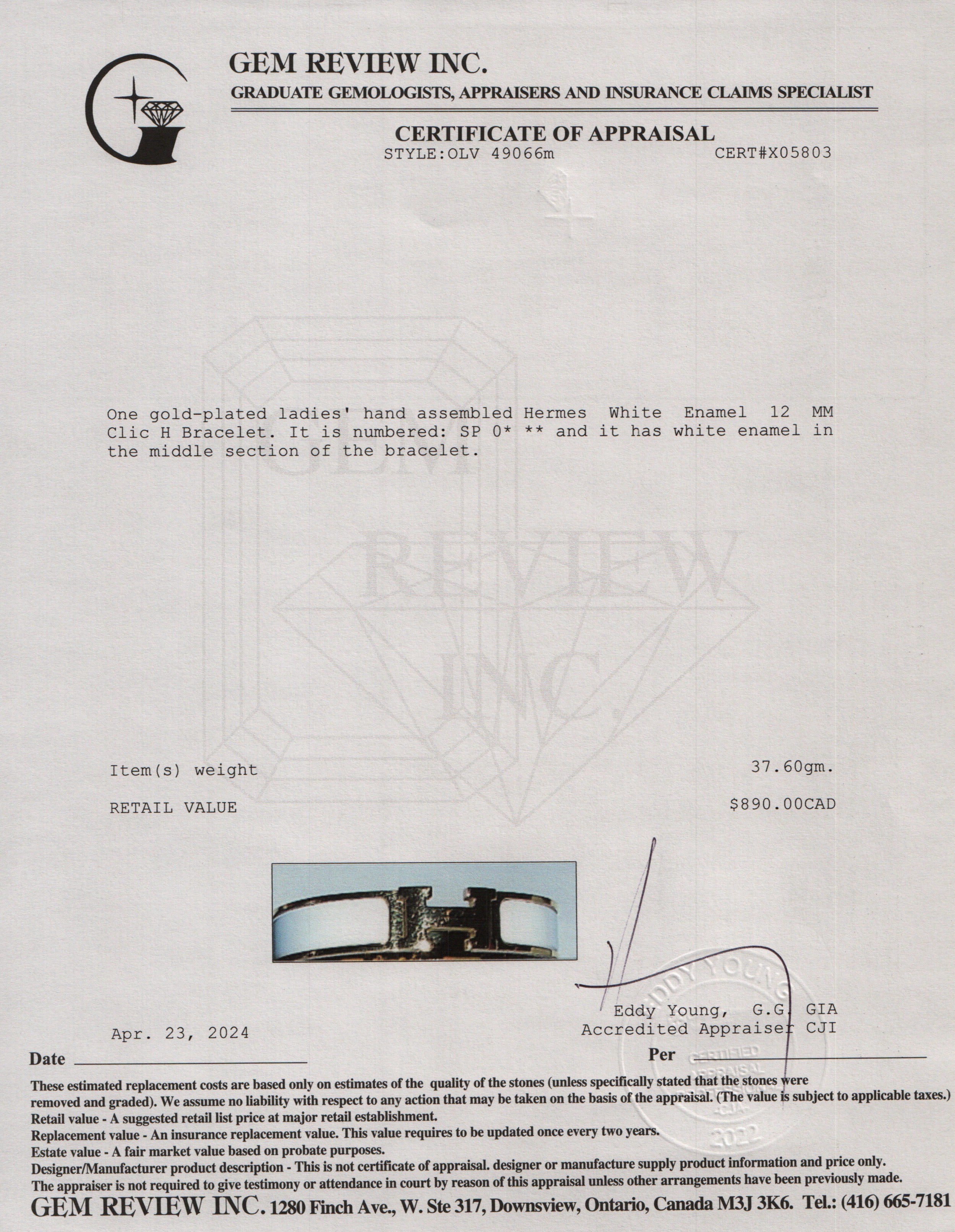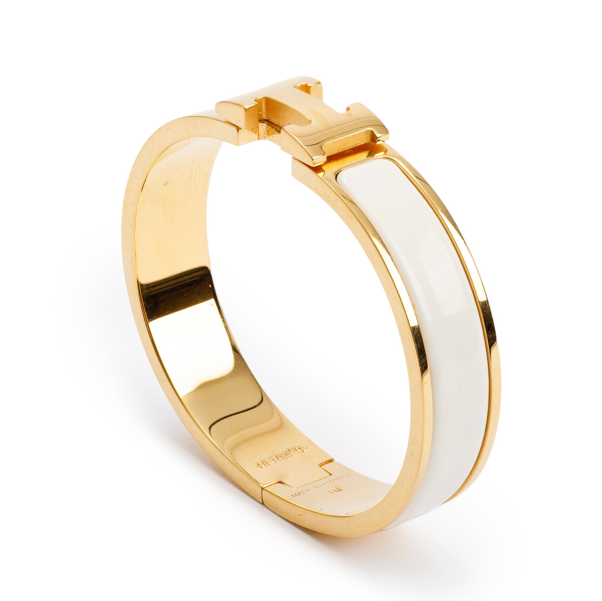 Gold-Plated White Enamel 12 MM Clic H Bracelet w/ Box