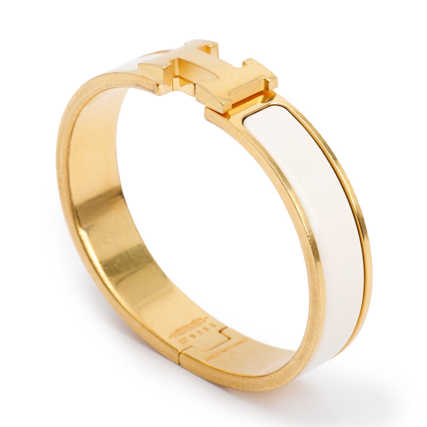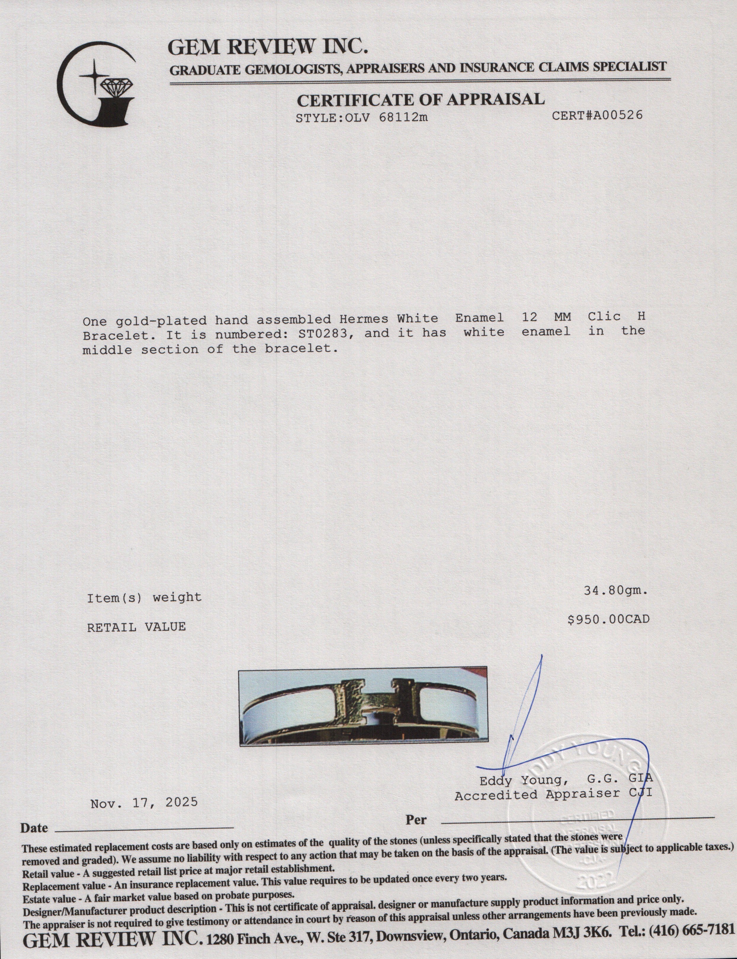 Gold Plated White Enamel 12 MM Clic H Bracelet w/ Box