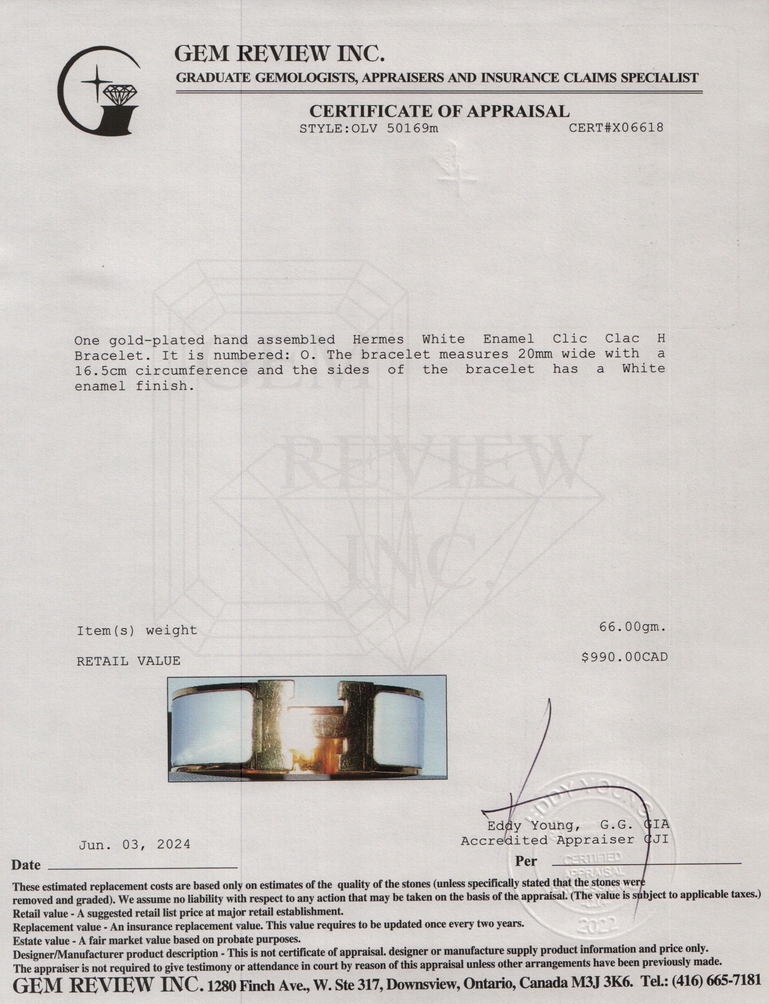 Gold-Plated White Enamel Clic Clac H Bracelet w/ Box