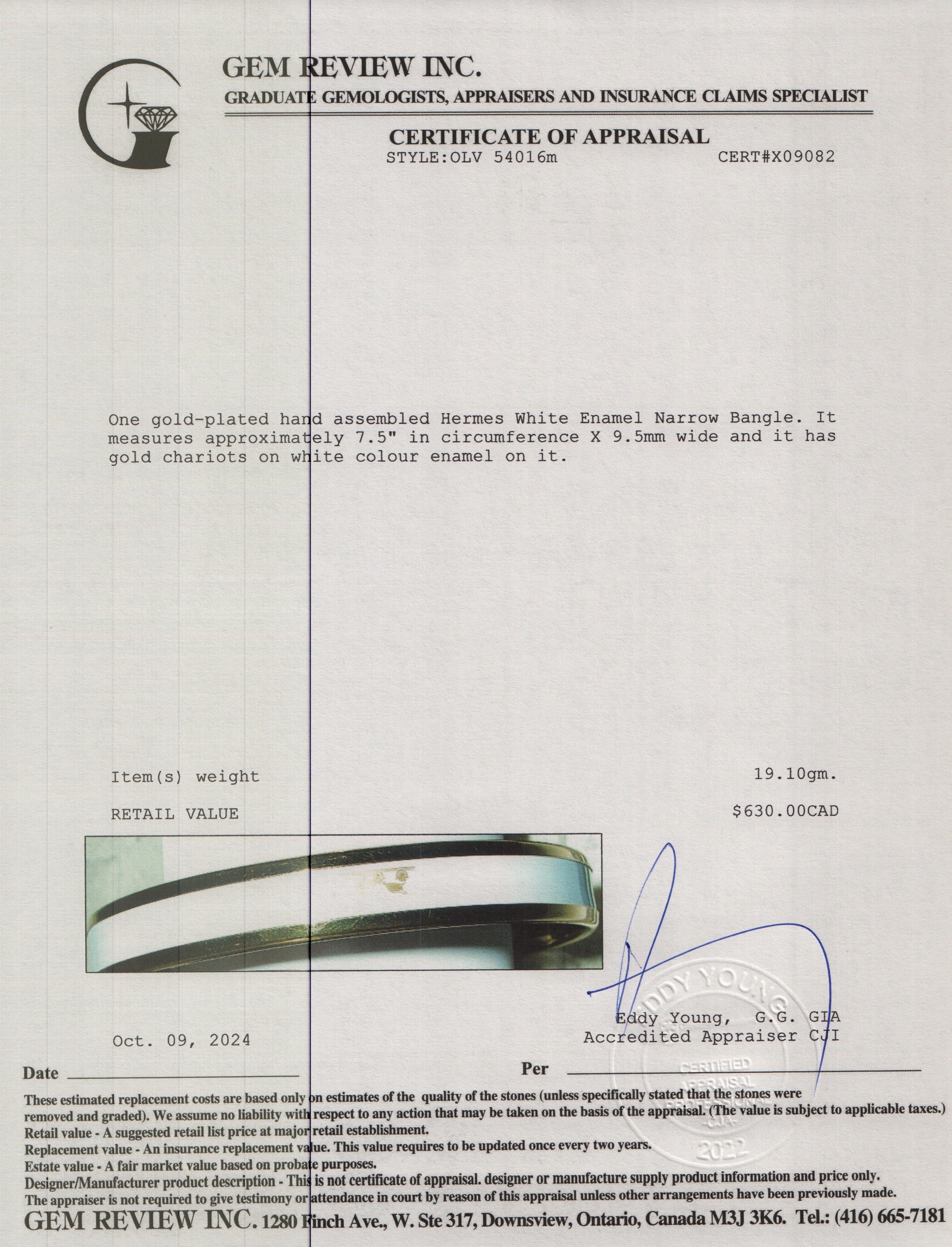 Gold-Plated White Enamel Narrow Bangle w/ Box