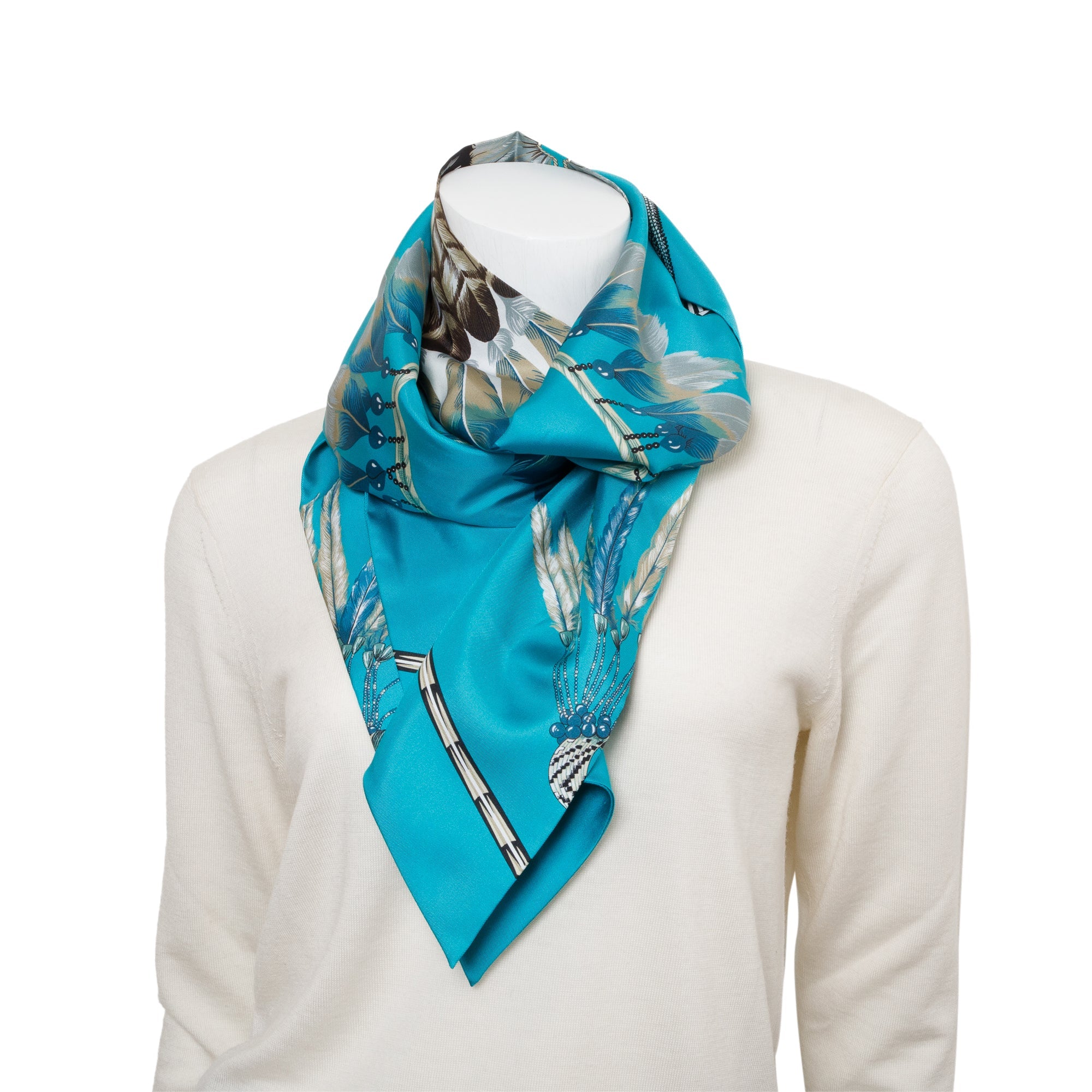Green Multicolor 'Majorelle Brazil' Maxi Twilly Long Silk Scarf w/ Box