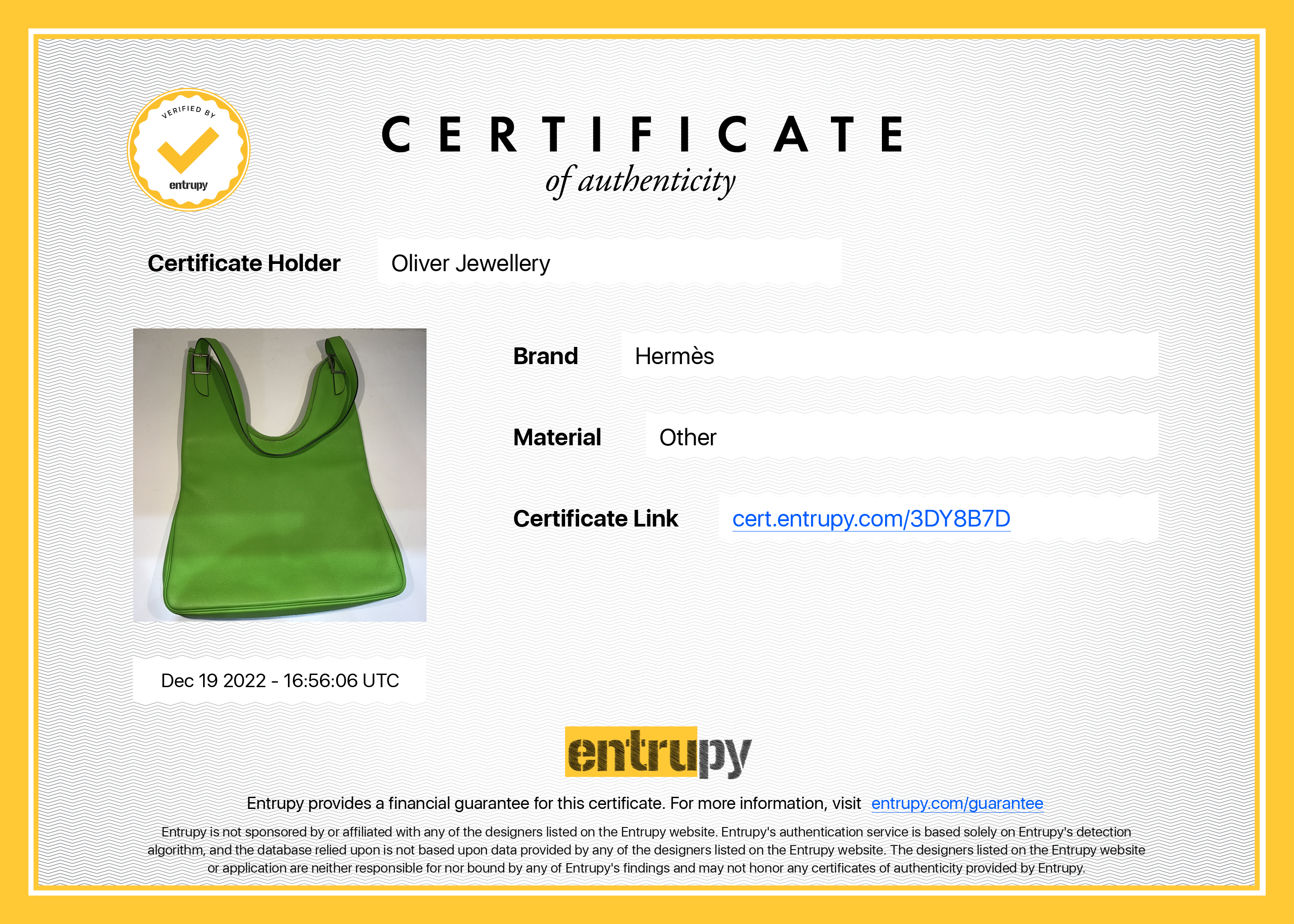 Included Items: Entrupy Certificate of Authenticity #: 3DY8B7D