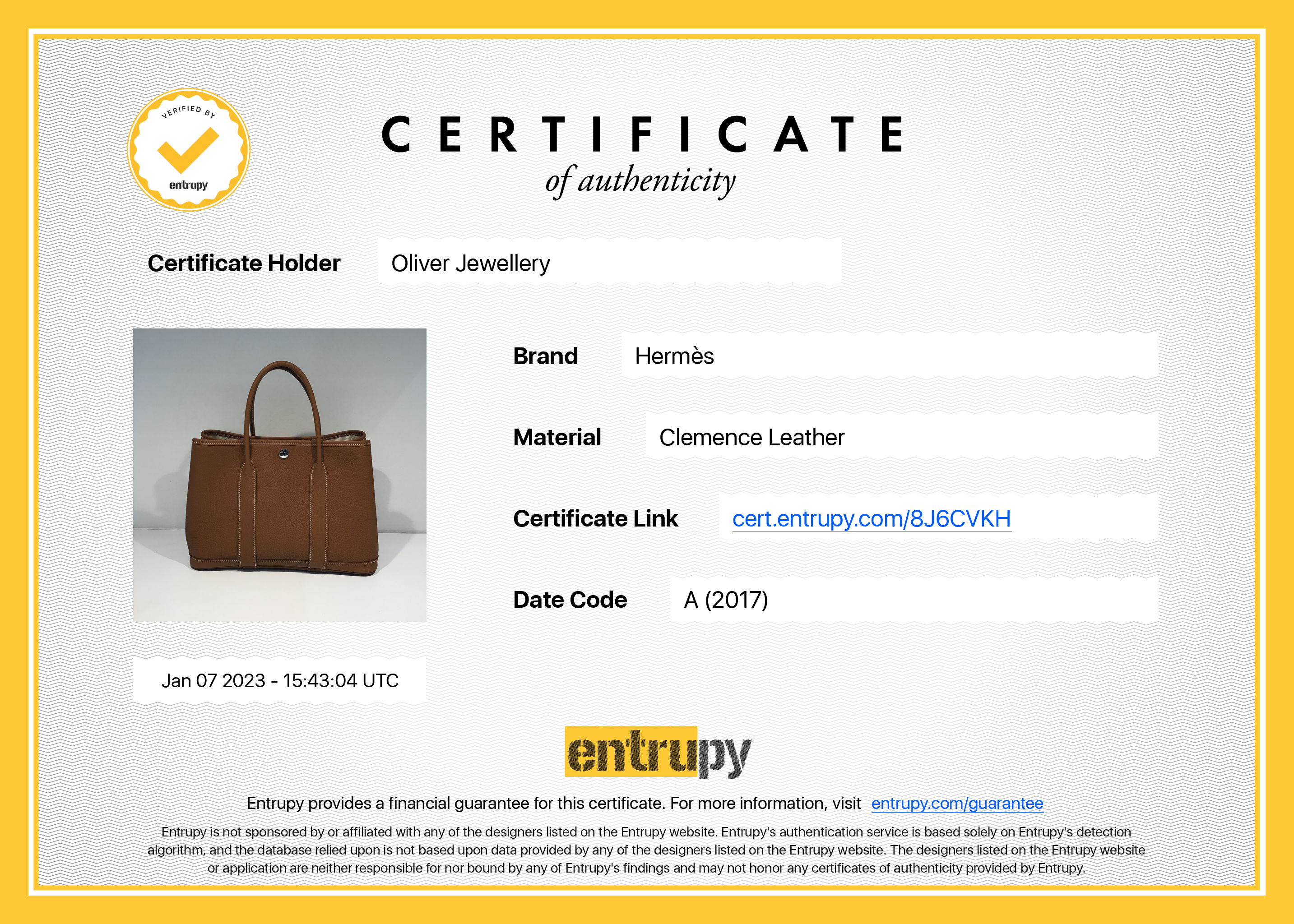 Included Items: Original Hermes Dust Bag & Entrupy Certificate of Authenticity #: 8J6CVKH