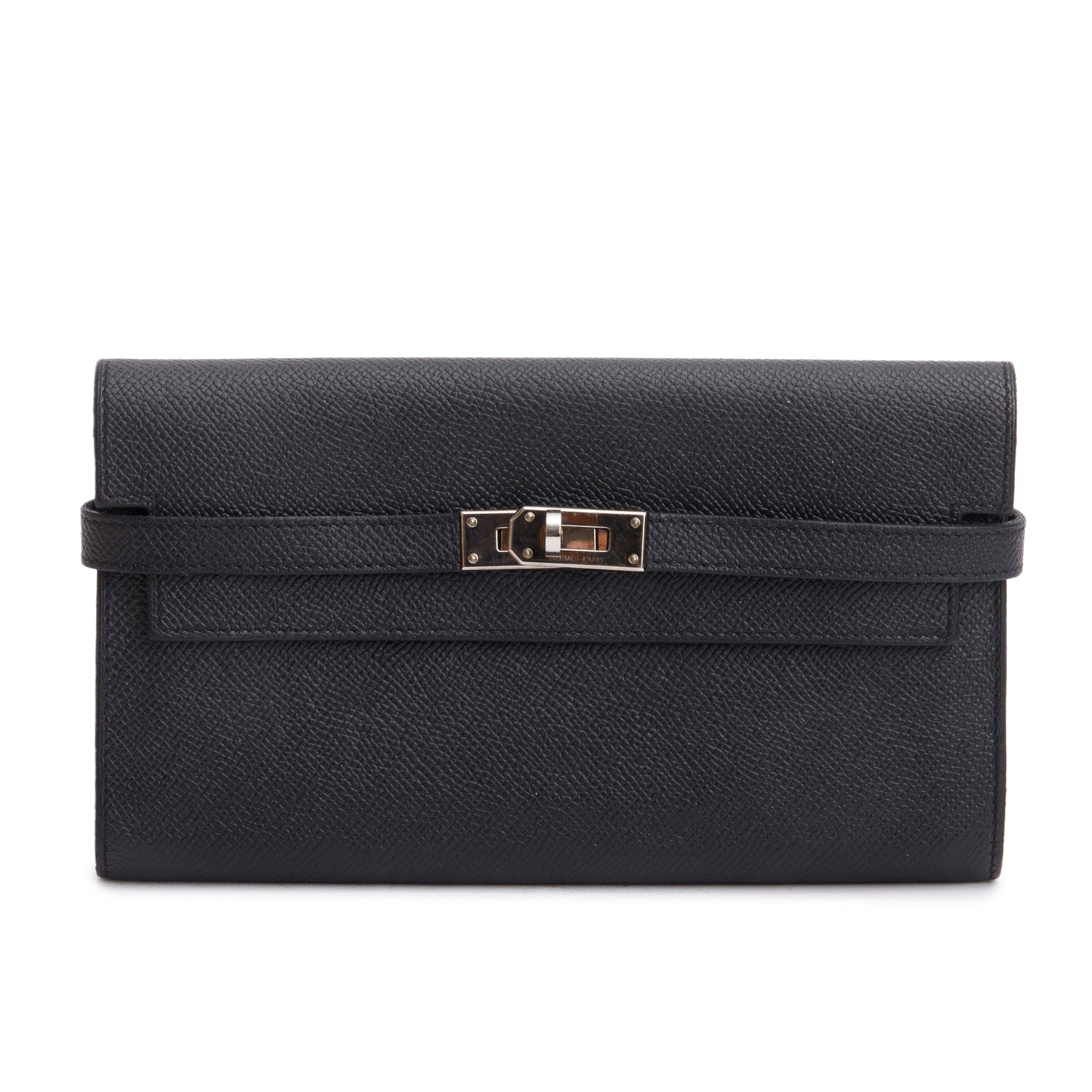 Noir Epsom Leather Classic Kelly Longue Wallet w/ Box