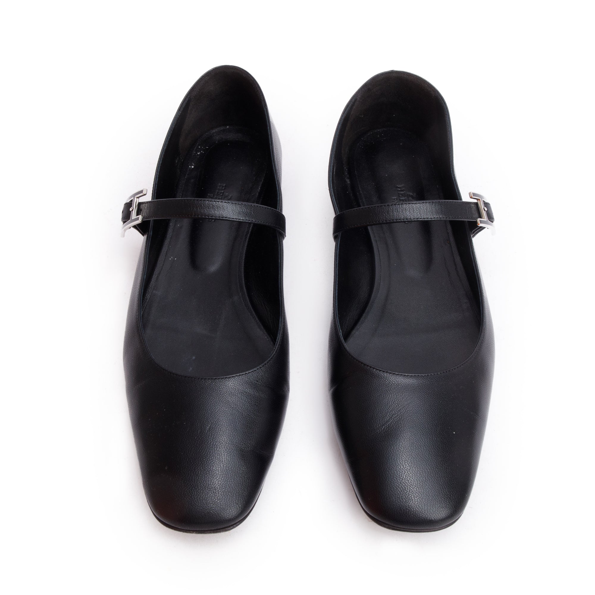 Noir Goatskin Leather Hapi Buckle Mary Jane Ballet Flat Shoes, Size 40.5 w/ Box