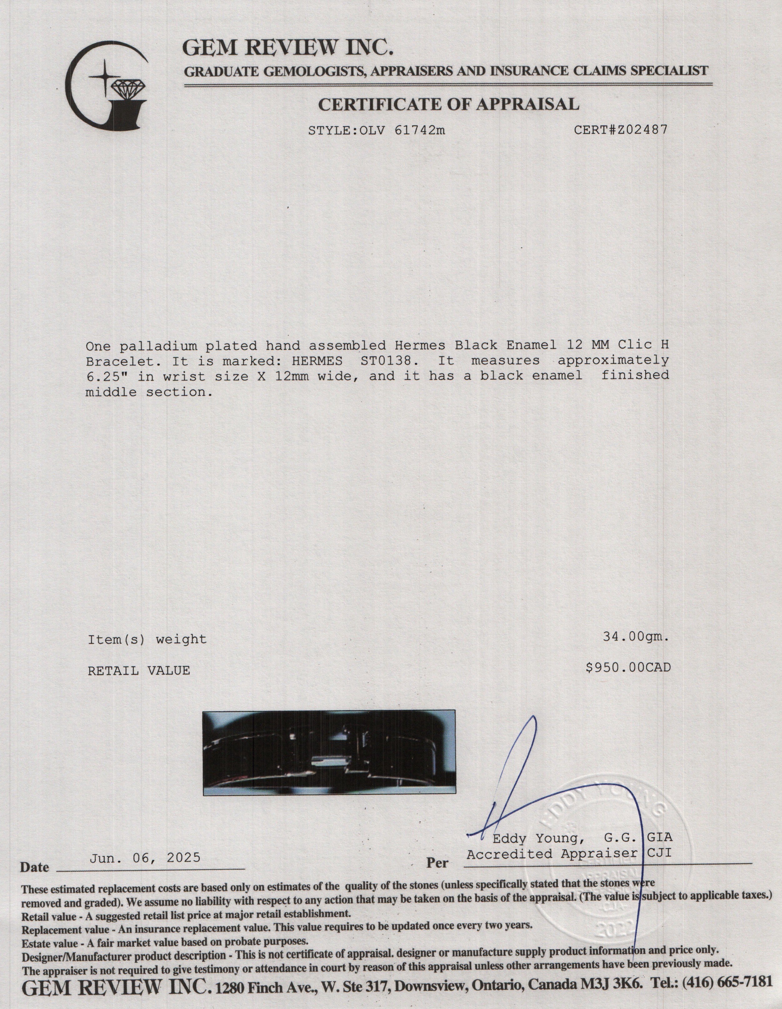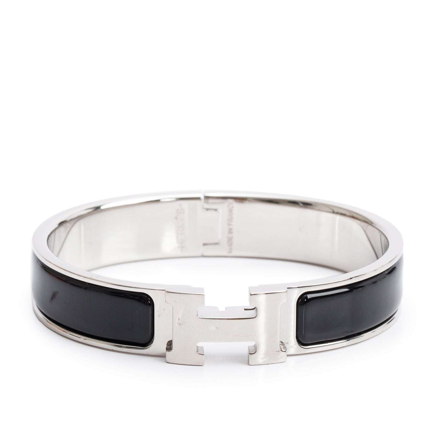 Palladium Plated Black Enamel 12 MM Clic H Bracelet