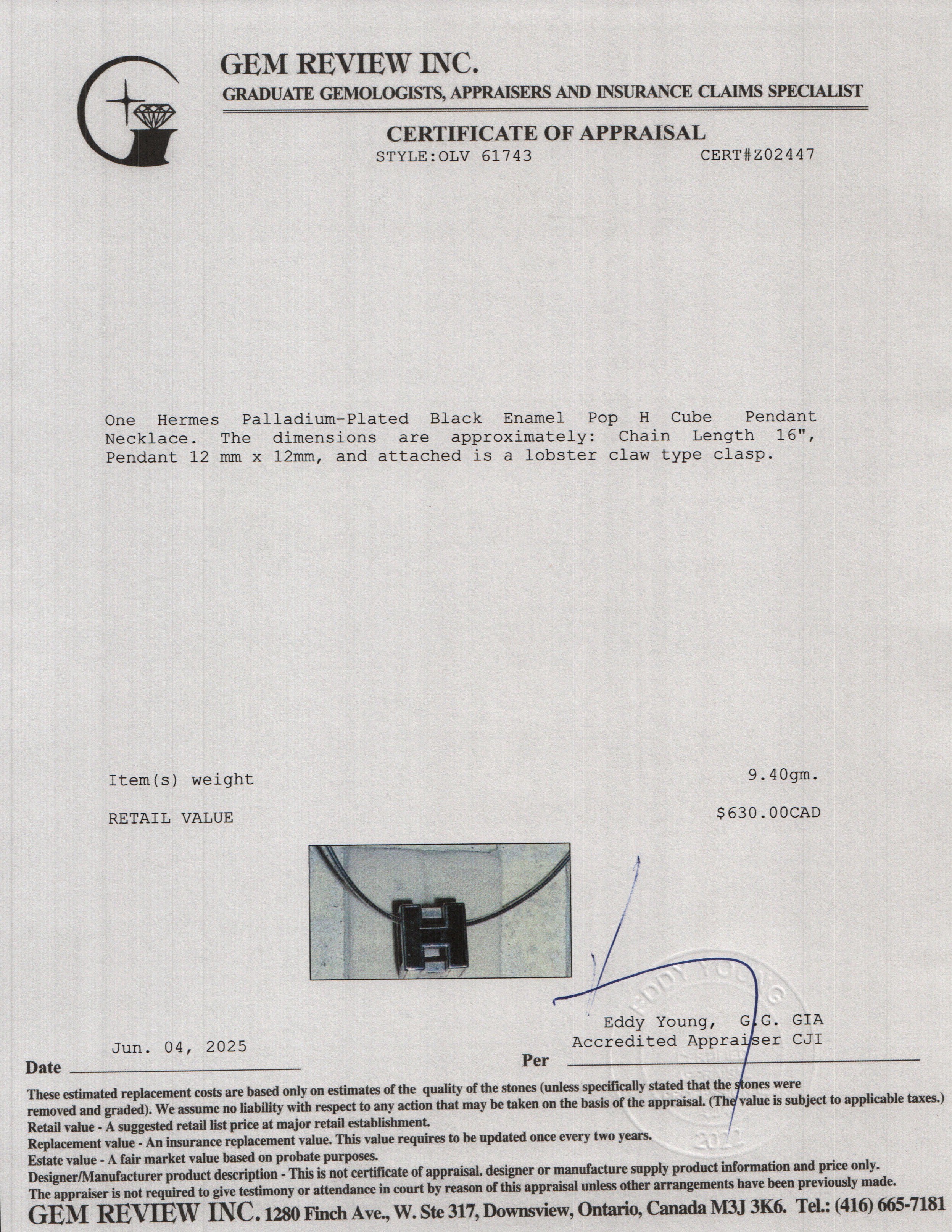 Palladium-Plated Black Enamel Pop H Cube Pendant Necklace w/ Box