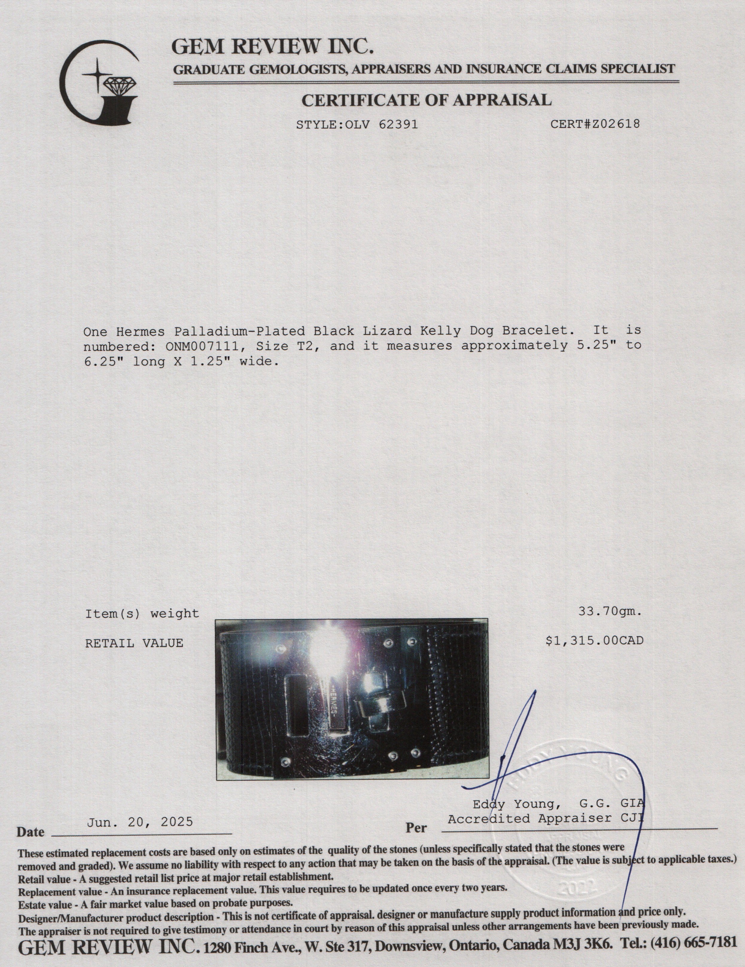 Palladium-Plated Black Lizard Kelly Dog Bracelet, Size T2