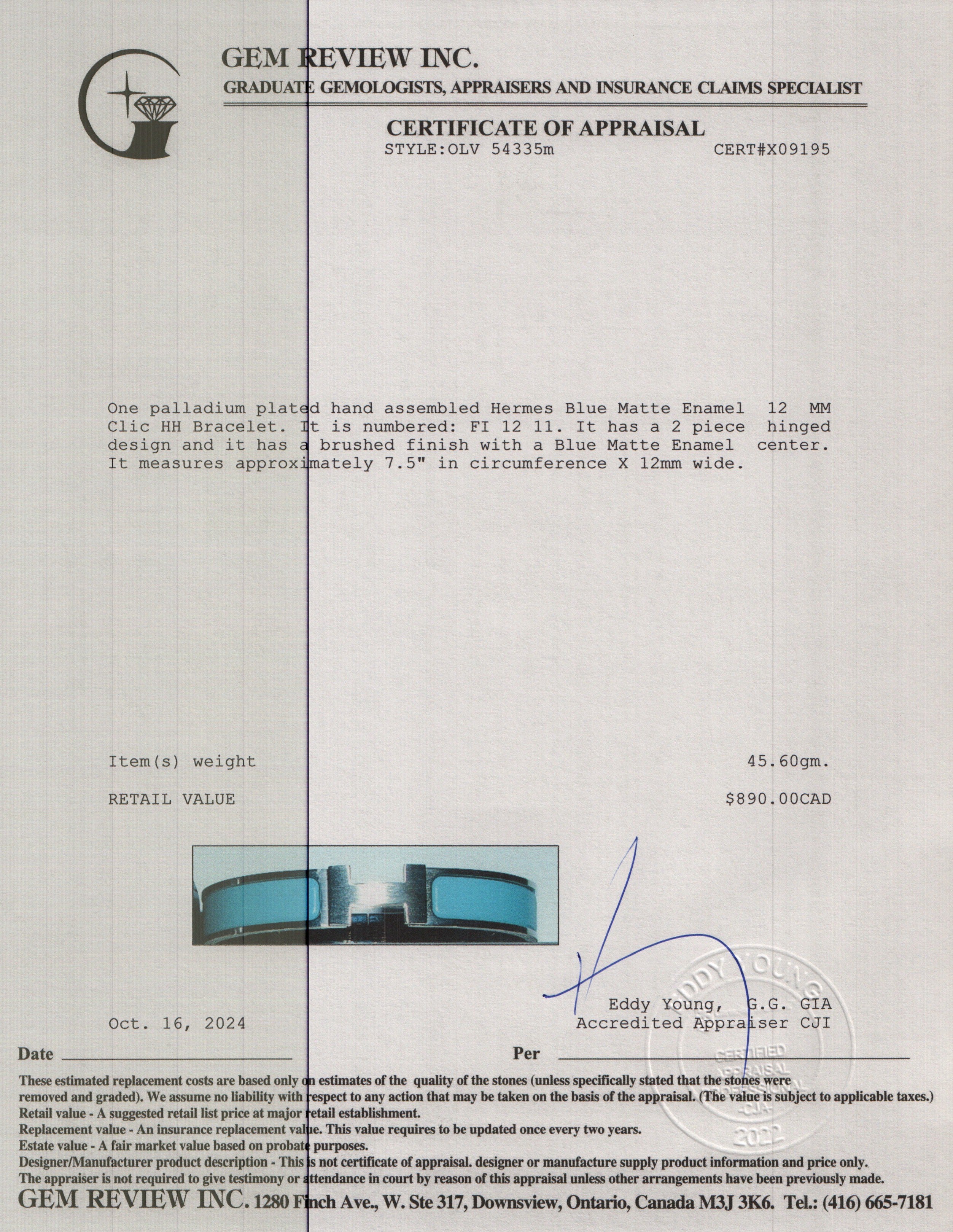 Palladium Plated Blue Matte Enamel 12 MM Clic HH Bracelet w/ Box