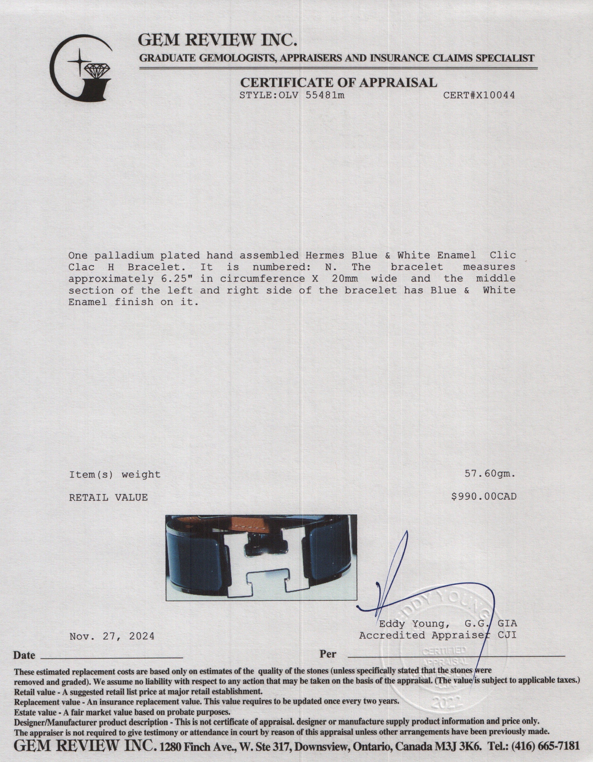 Palladium-Plated Blue & White Enamel Clic Clac H Bracelet