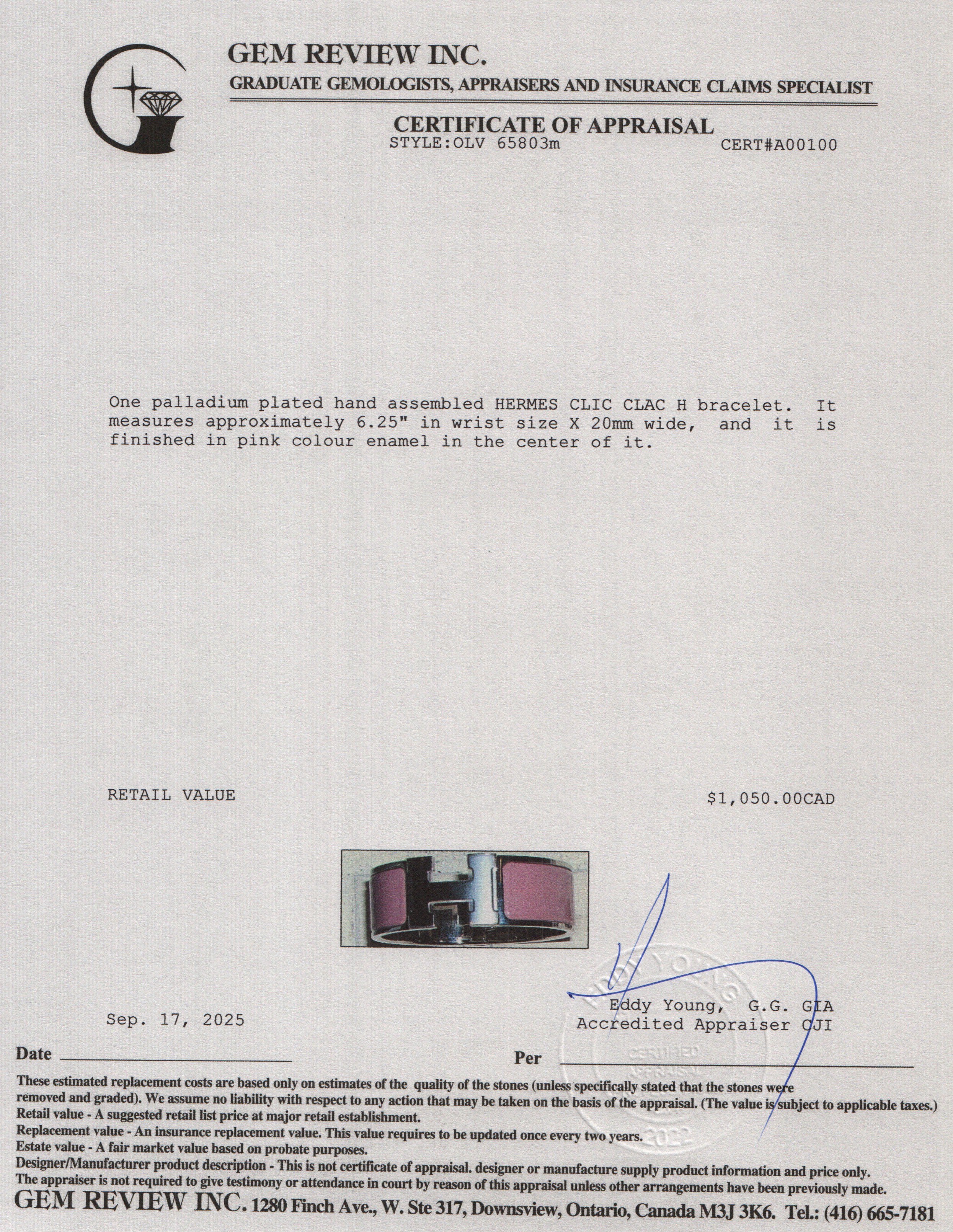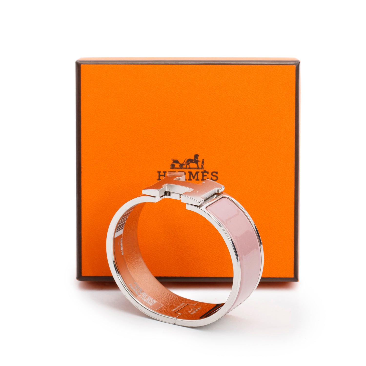 Palladium-Plated Bois de Rose Enamel Clic Clac H Bracelet w/ Box