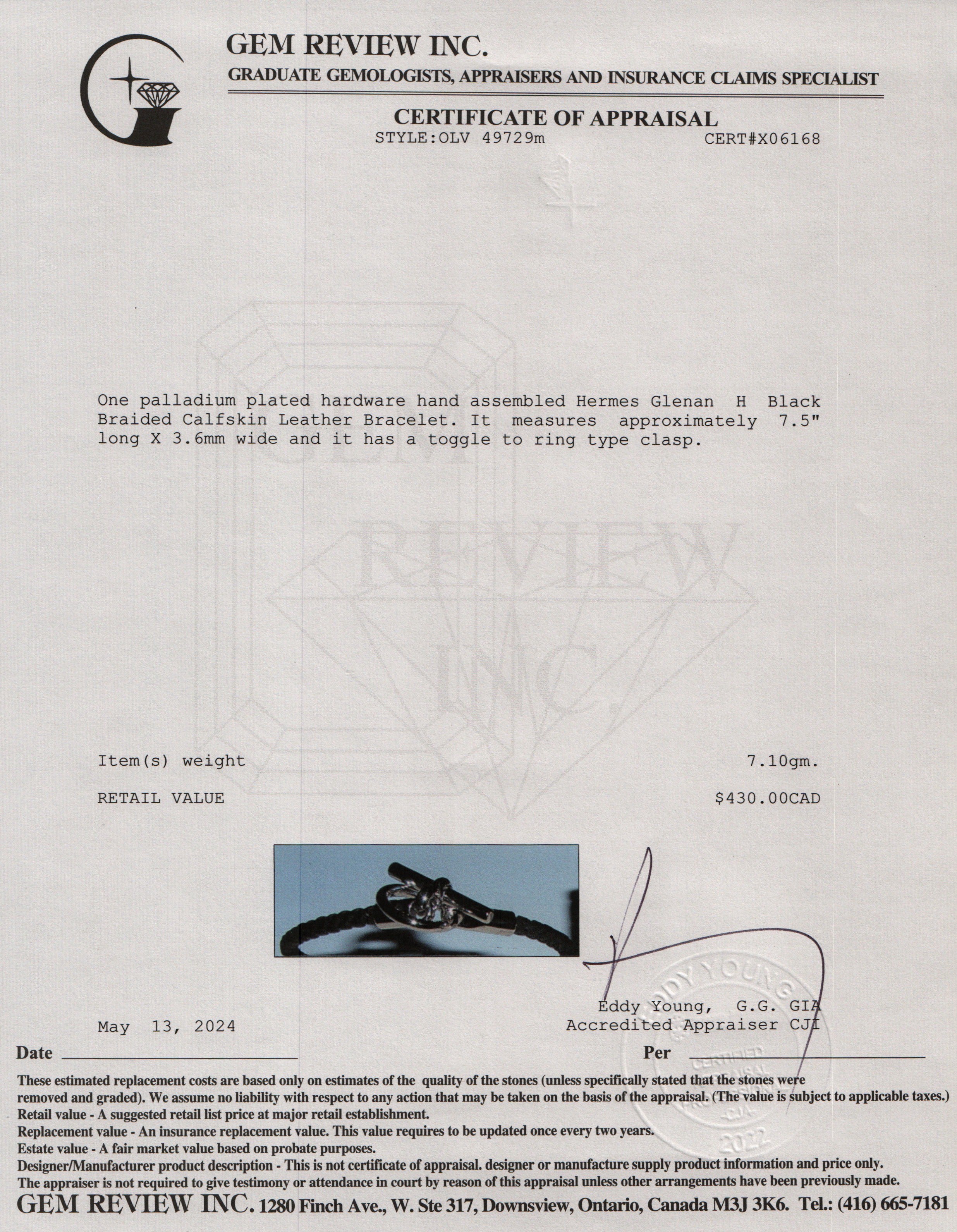 Palladium Plated Glenan H Black Braided Calfskin Leather Bracelet w/ Box