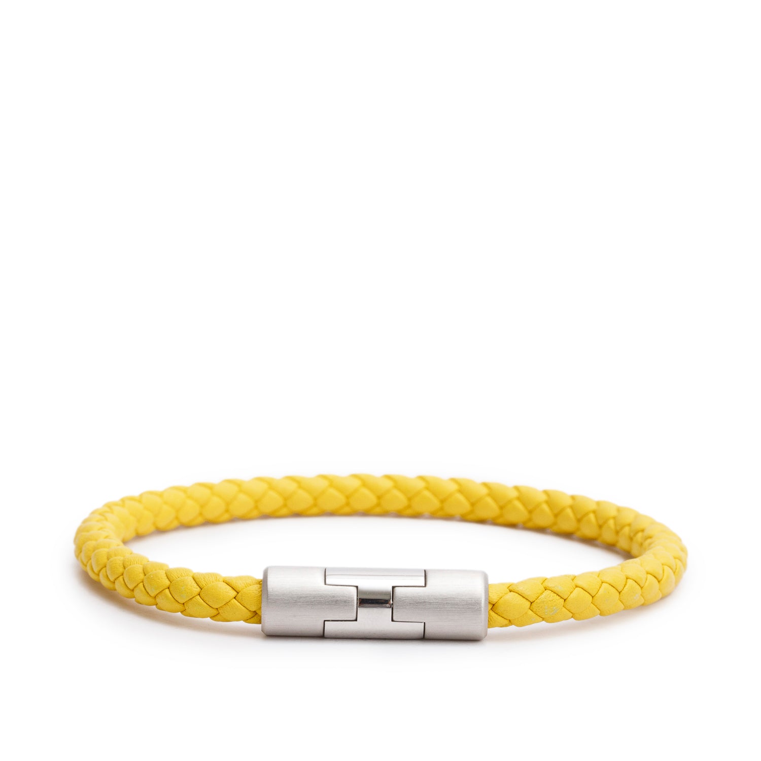 Palladium Plated Jaune De Naples Swift Leather Puzzle H Bracelet w/ Box & Receipt