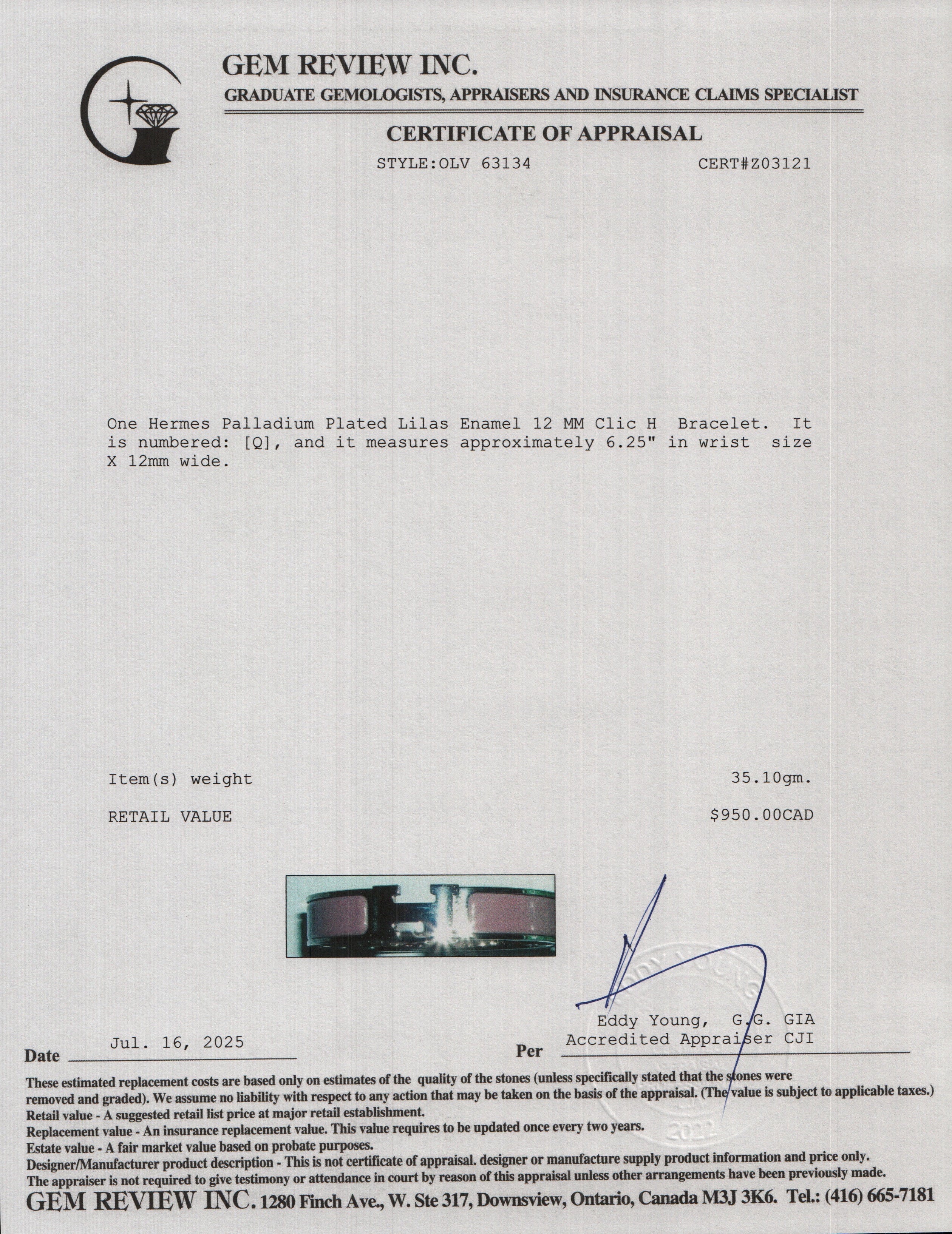 Palladium Plated Lilas Enamel 12 MM Clic H Bracelet w/ Box