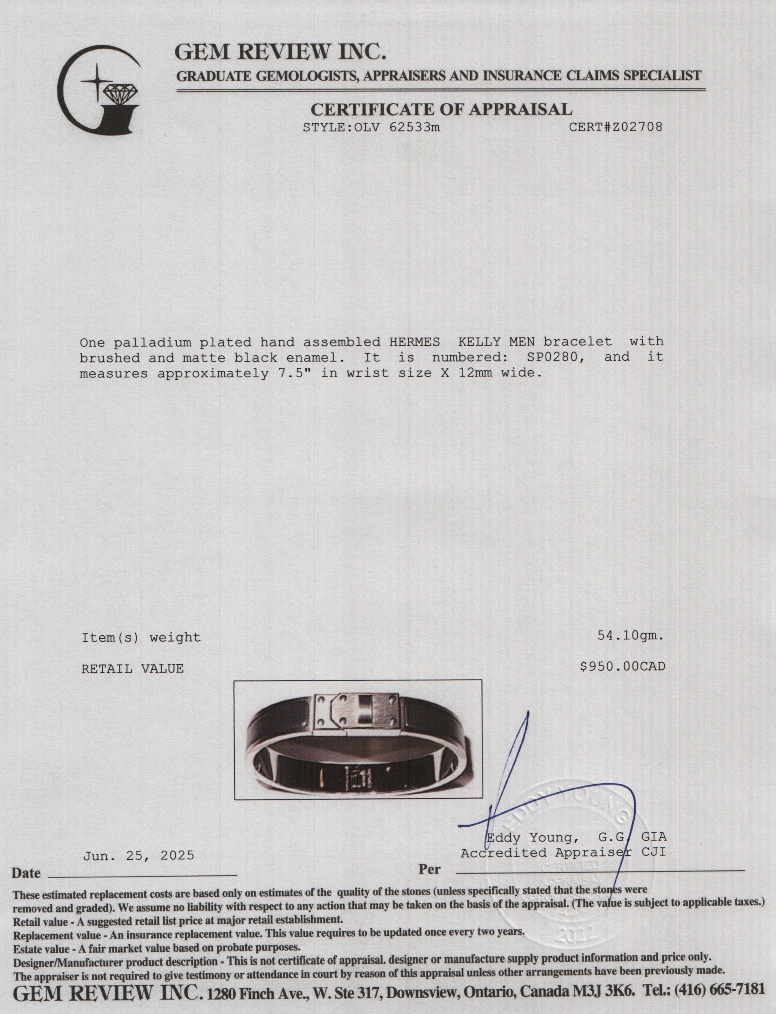 Palladium Plated Matte Black Enamel Kelly Bracelet w/ Box
