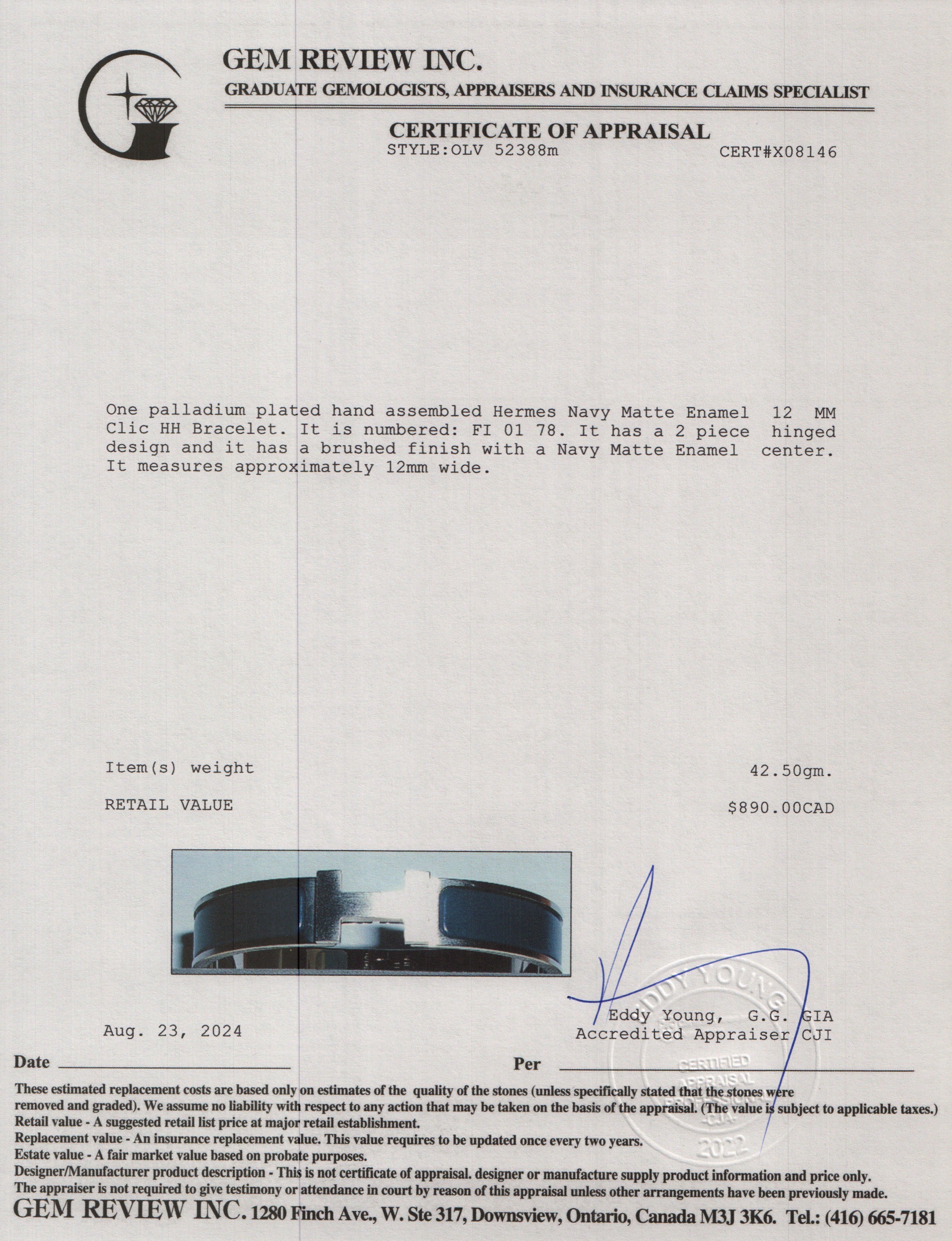 Palladium Plated Navy Matte Enamel 12 MM Clic HH Bracelet w/ Box