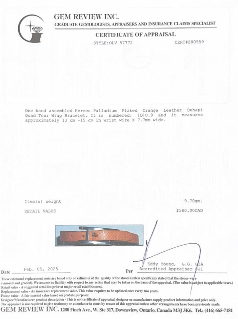 Palladium Plated Orange Leather Behapi Quad Tour Wrap Bracelet