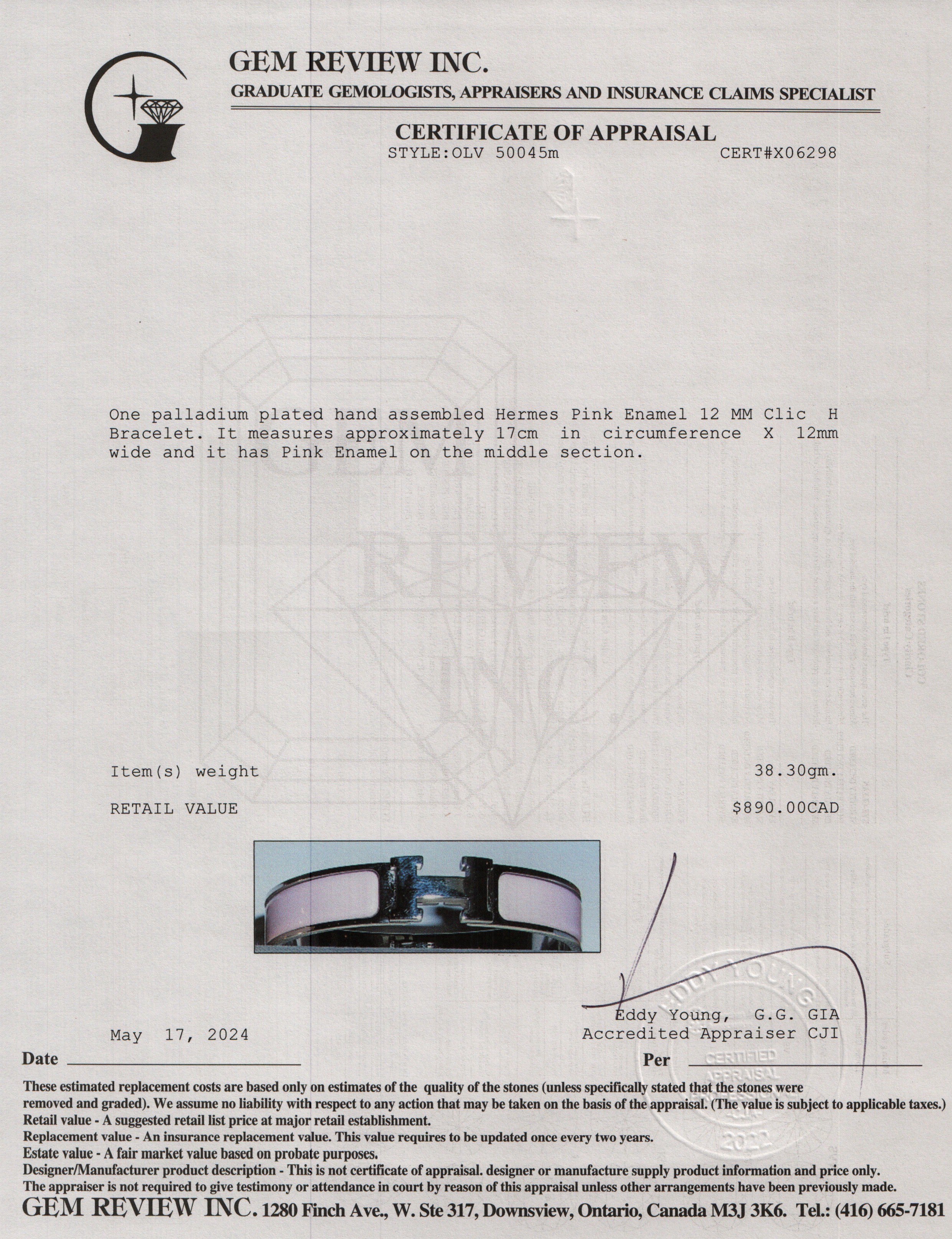 Palladium Plated Pink Enamel 12 MM Clic H Bracelet
