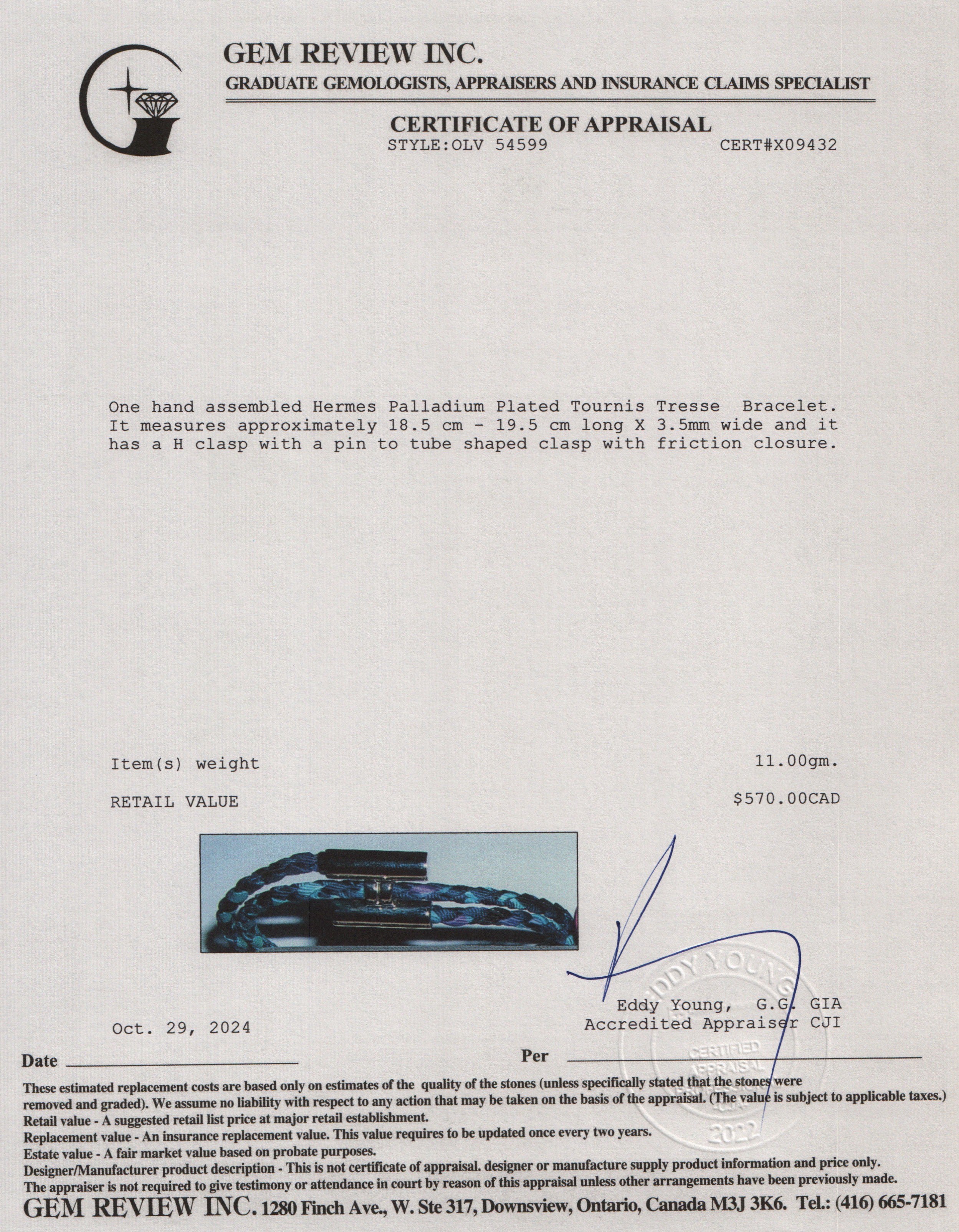 Palladium Plated Tournis Tresse Bracelet w/ Box