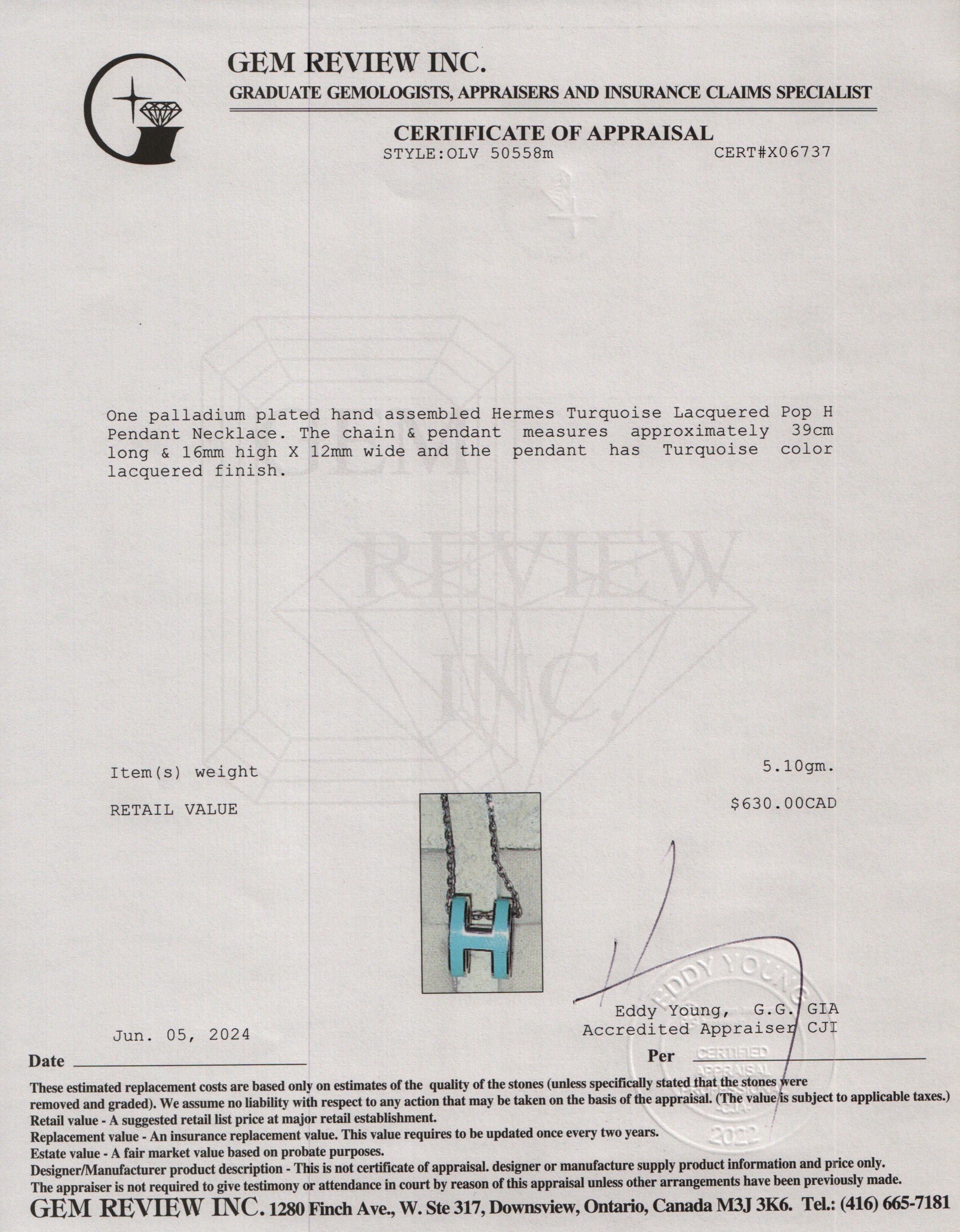 Palladium-Plated Turquoise Lacquered Pop H Pendant Necklace