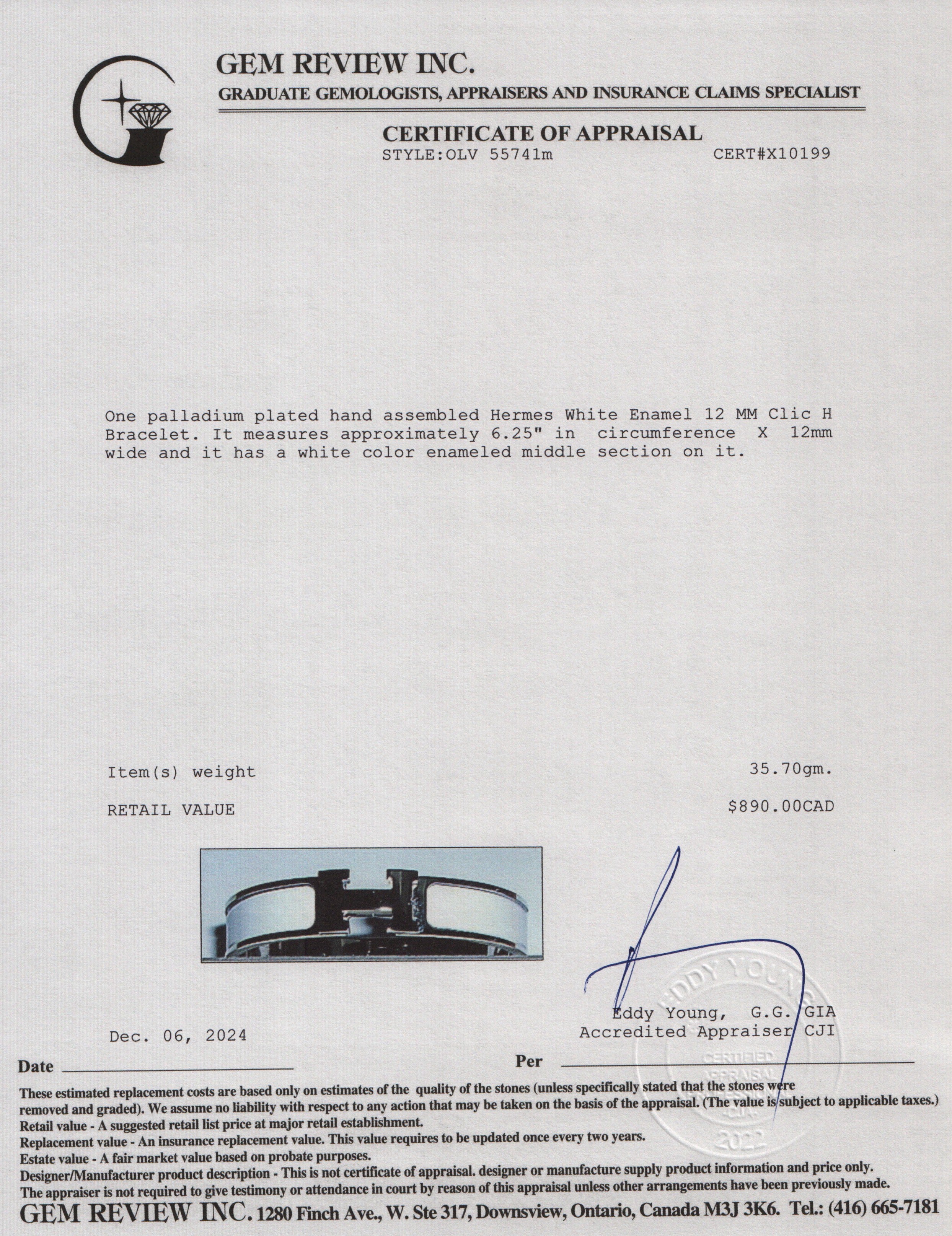 Palladium Plated White Enamel 12 MM Clic H Bracelet