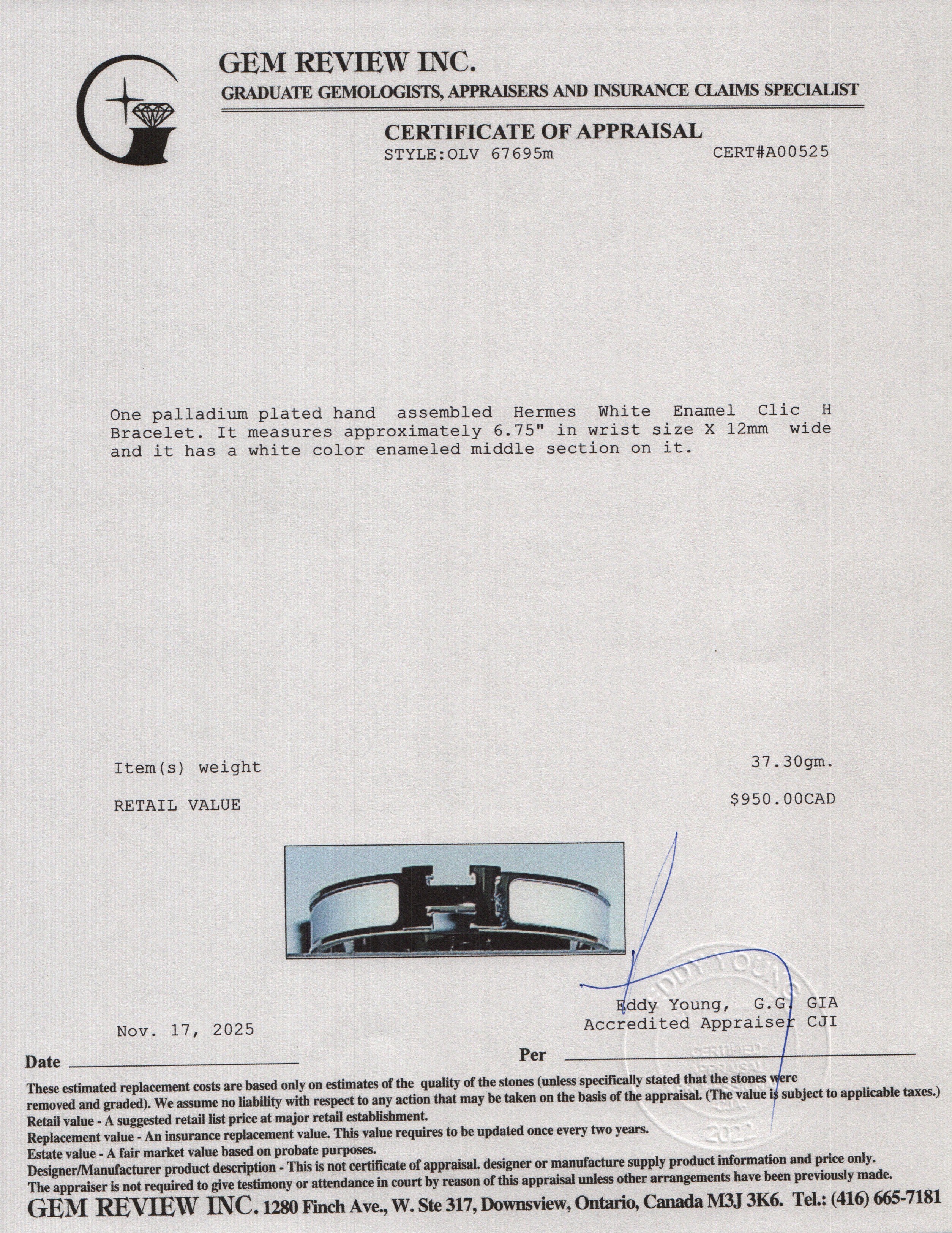 Palladium Plated White Enamel 12 MM Clic H Bracelet w/ Box
