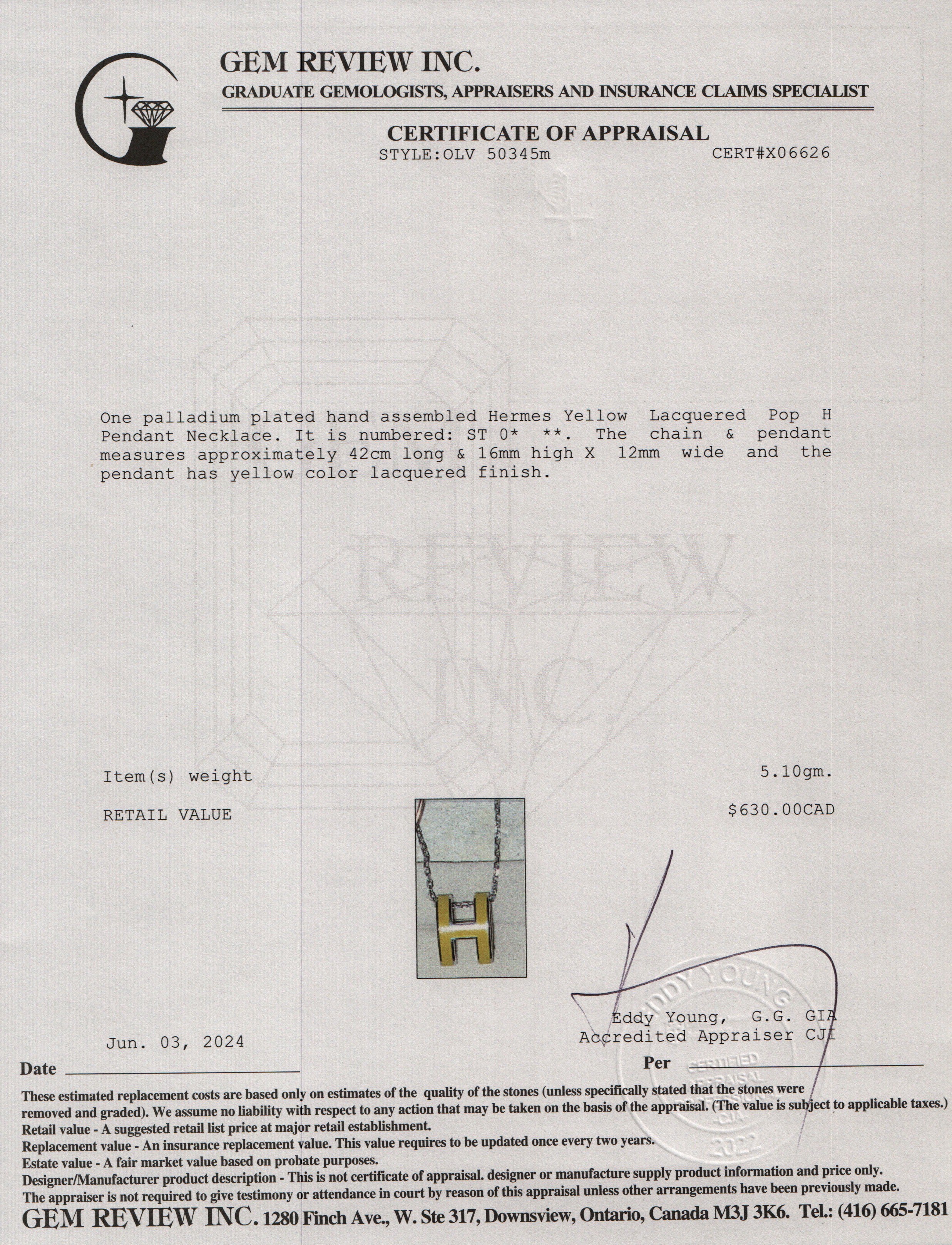 Palladium-Plated Yellow Lacquered Pop H Pendant Necklace w/ Box