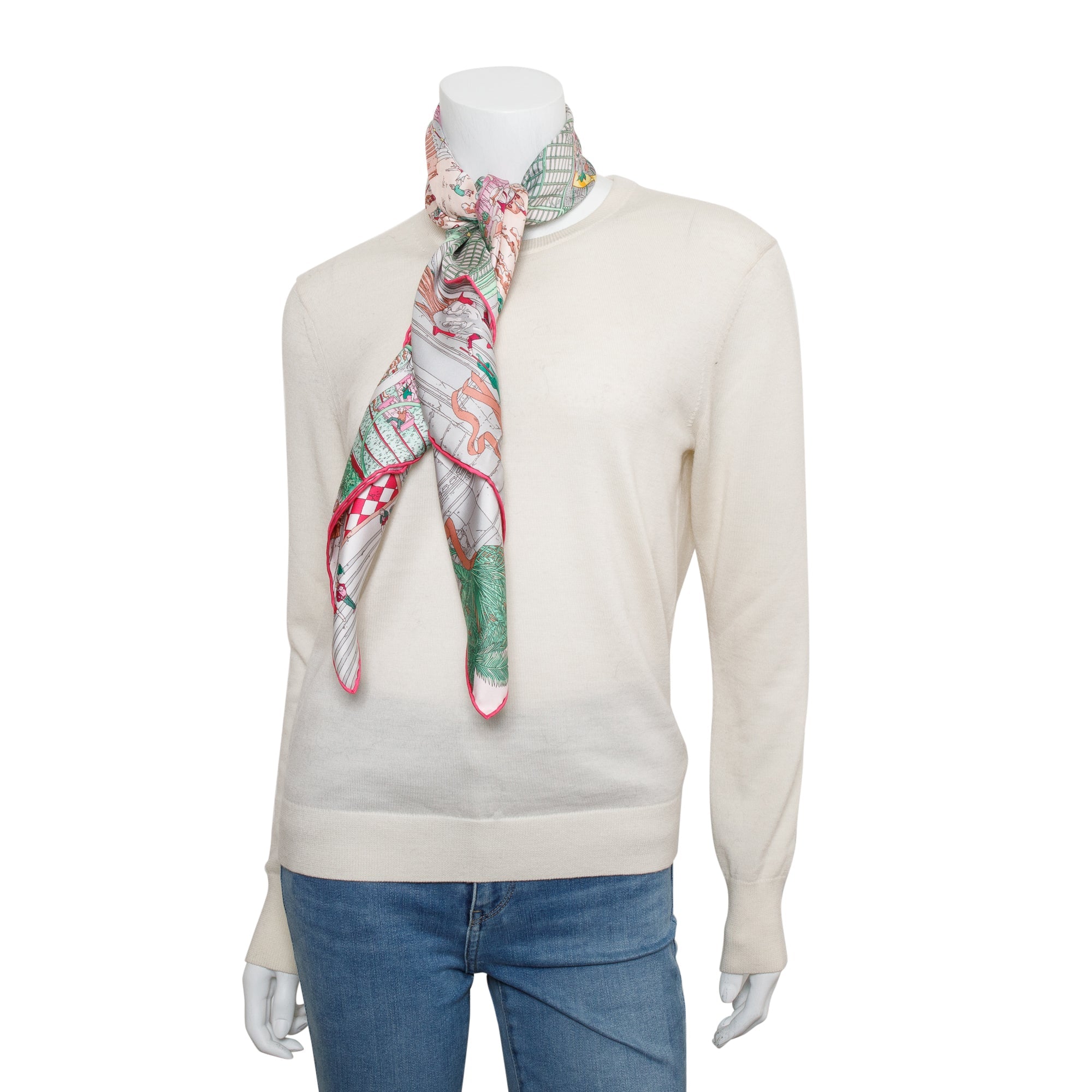Pink Multicolor 'Le Grand Prix Du Faubourg' Silk Scarf 90 w/ Box & Receipt