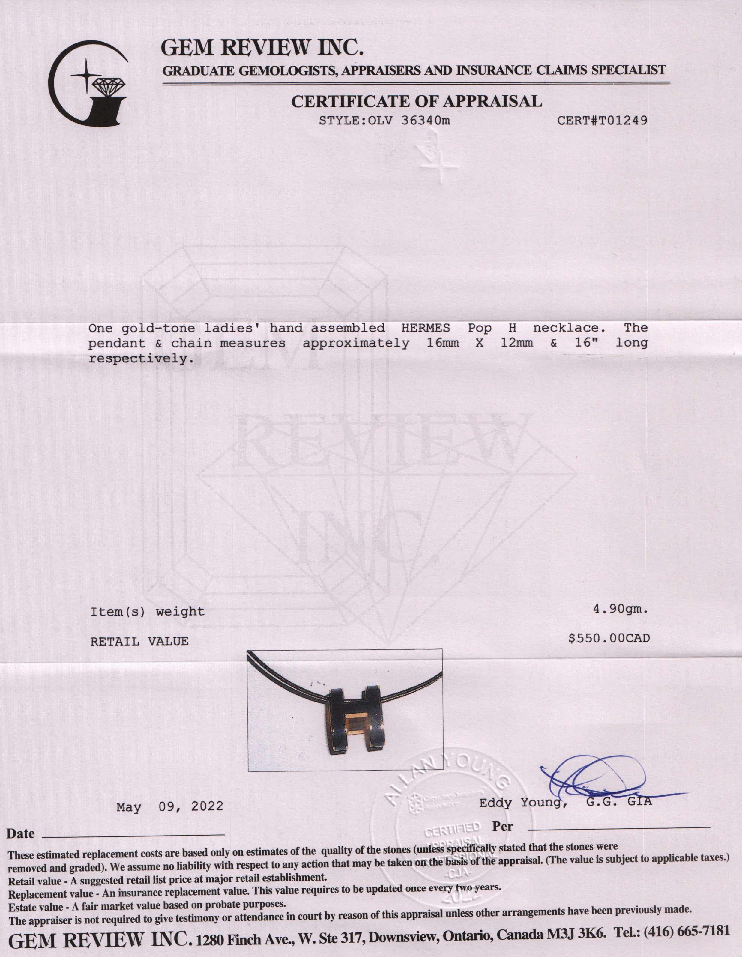 Included Items: Original Hermes Box & Gem Review Appraisal