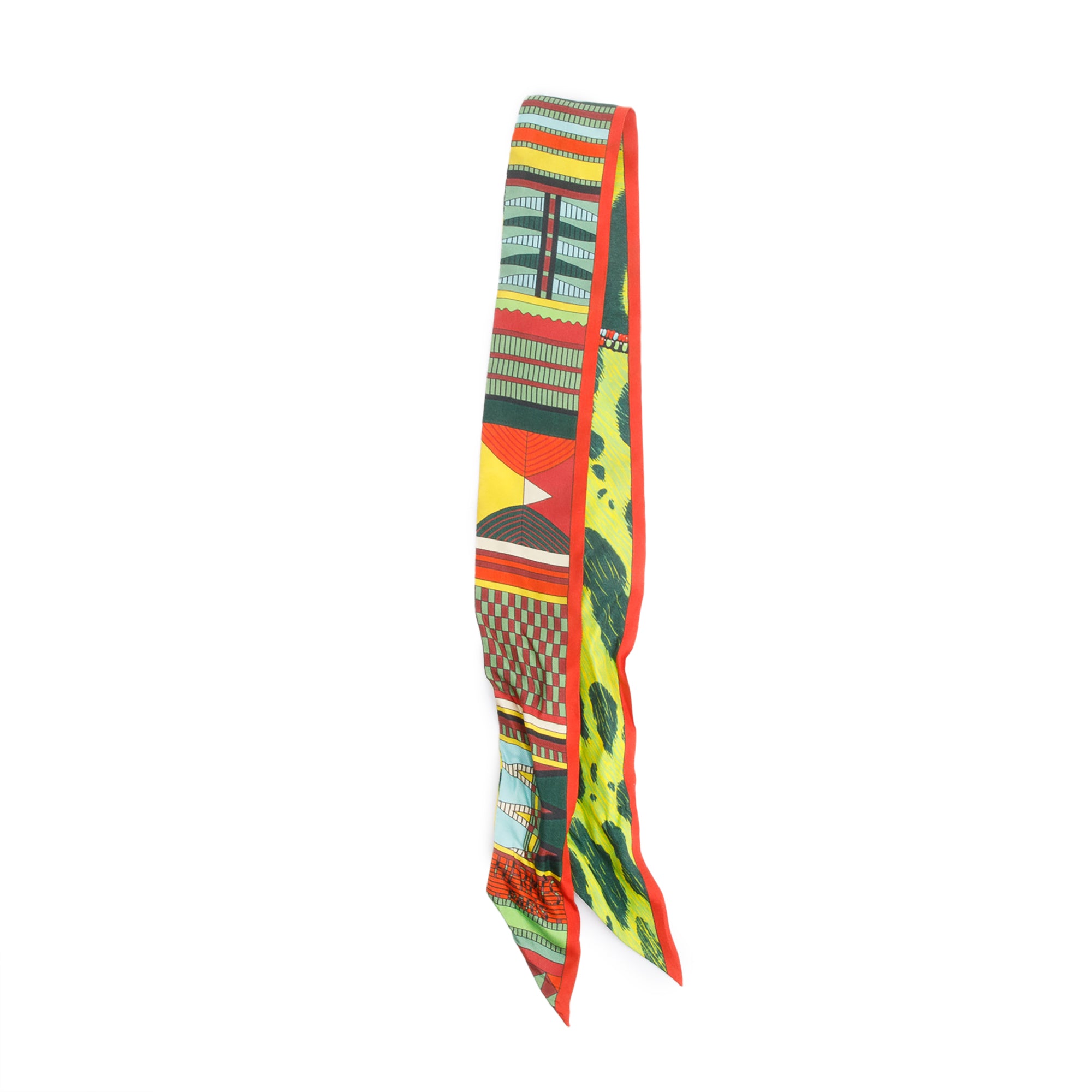 Red Multicolor 'Pelage Et Camouflage' Silk Twilly