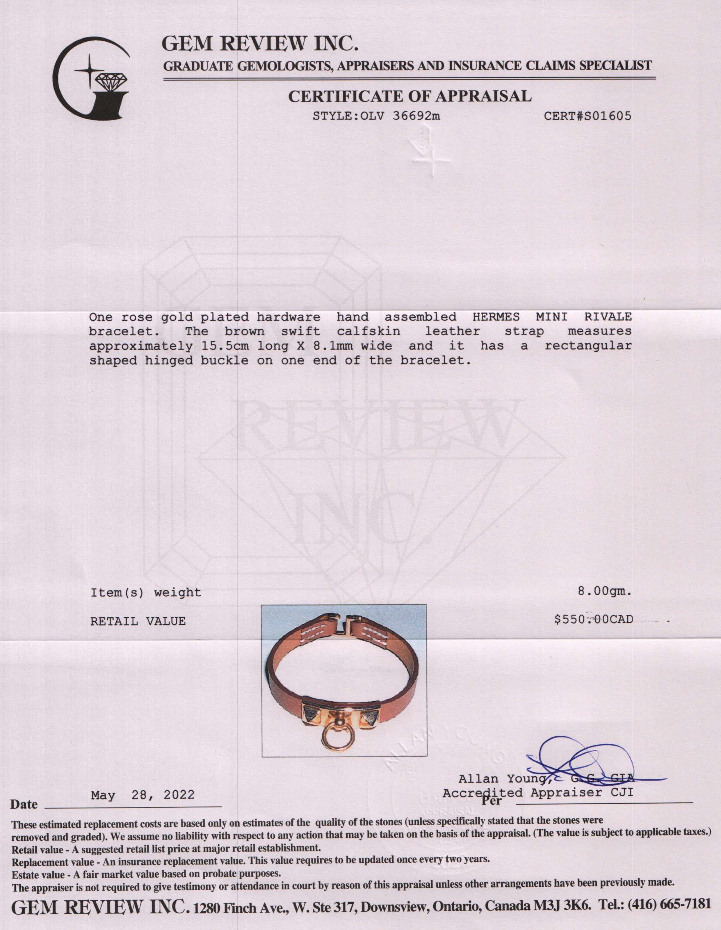Included Items: Original Herms Box & Pouch and Gem Review Appraisal